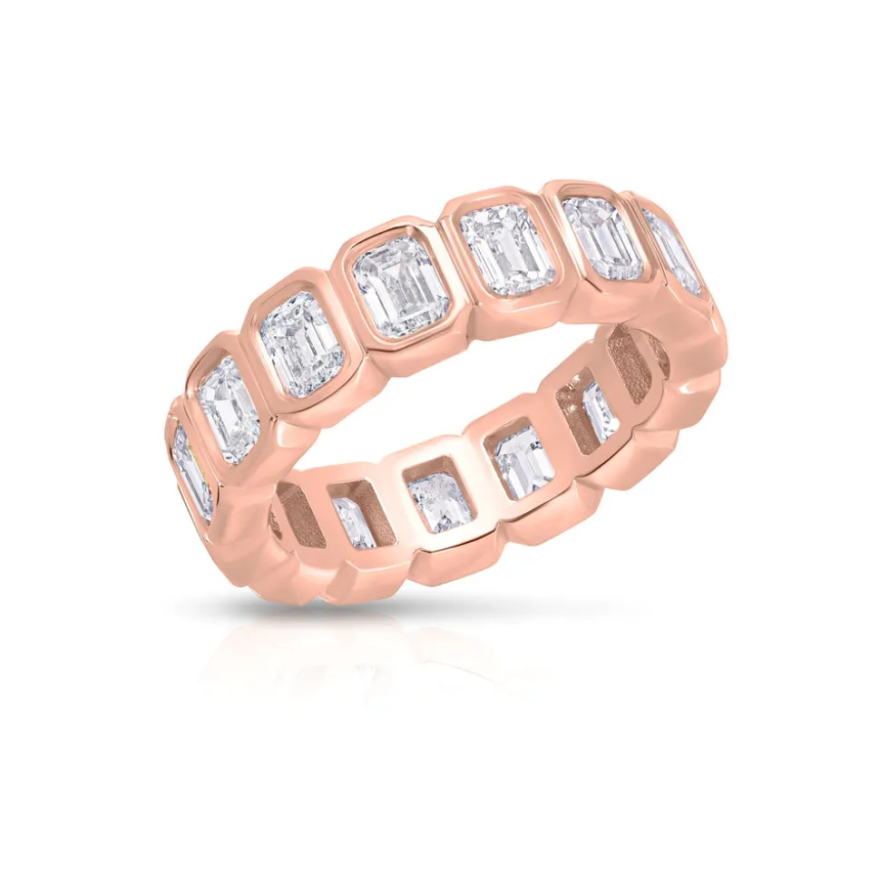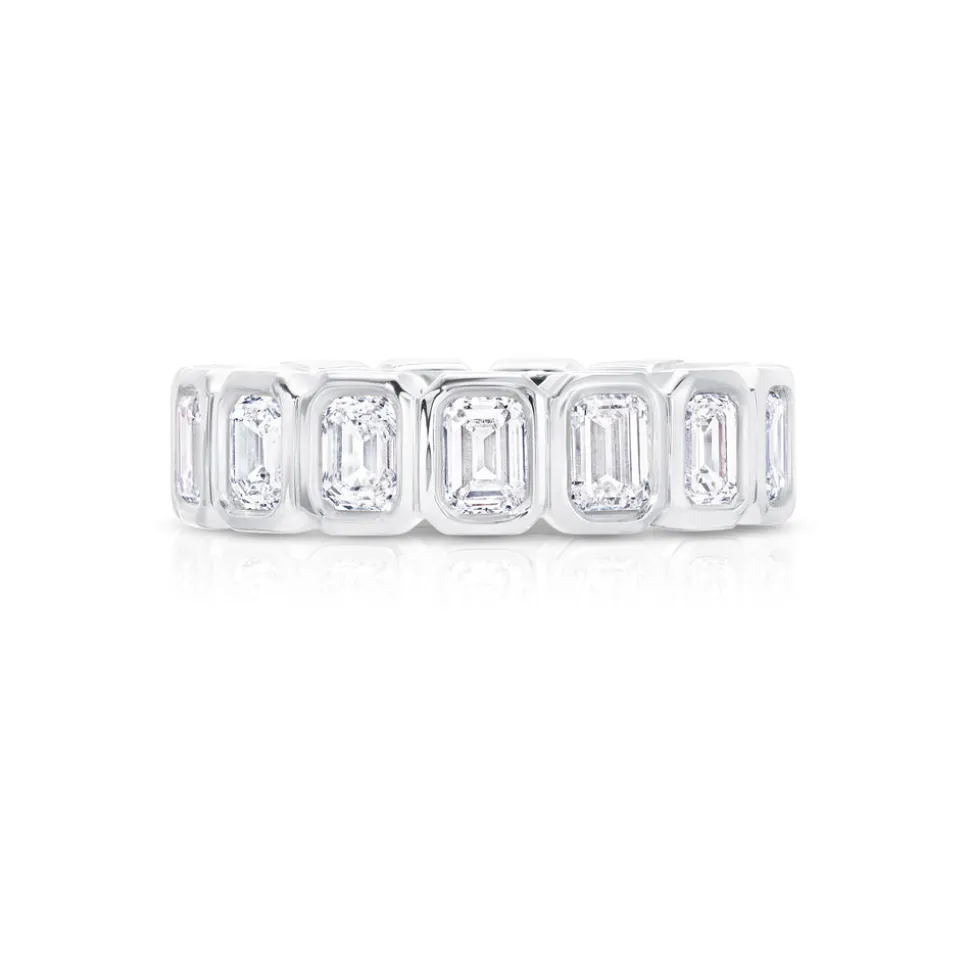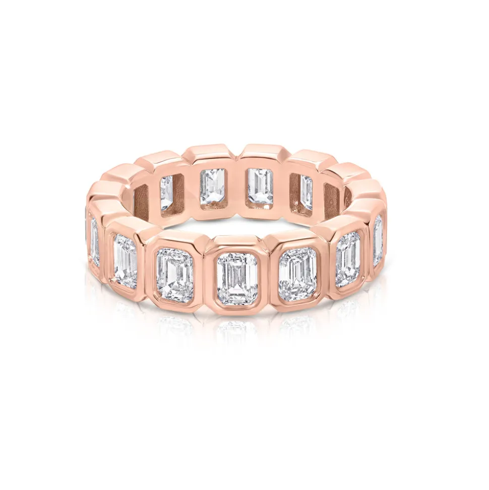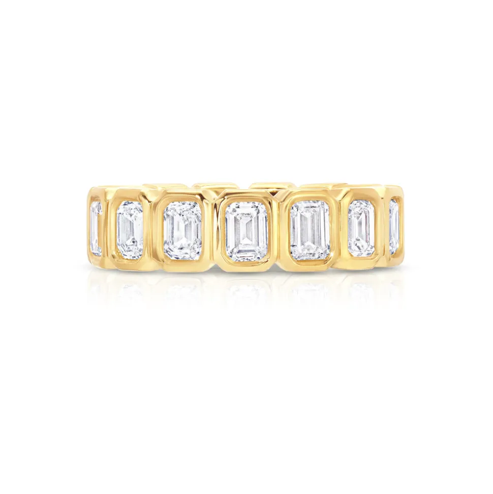 Born into a family of fine jewelers, sisters Oren and Yarden Katz use recycled 14 karat gold and ethically sourced diamonds to craft their contemporary pieces in their Downtown Los Angeles studio. Worn by the likes of Taylor Swift and Jessica Alba, the jewelers are inspired by antique and custom pieces found in their mother’s jewelry box, and each new collection brings a uniquely modern interpretation of heirloom design and technique. Boasting vertically set emerald cut diamonds in a handmade bezel mounting, the NS Nova Eternity Band has the right amount of sparkle, balancing the brilliance of the gemstones with its subtle flair.