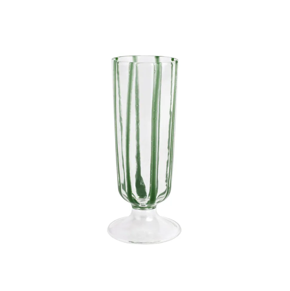 Inspired by Italian lifestyle, history, and culture, VIETRI uses the highest-quality clays from the soil of Italy’s countryside to produce beautiful, everyday items for your home. Hand-painted details, quality glazes, and fine craftsmanship help you savor the moments spent at your table and the company of those who join it. Mouth blown by master artisans, the Nuovo Stripe series features painterly stripes gliding down each glass, resulting in a festive and chic accent to your tabletop. The Nuovo Stripe Green Champagne Glass offers an ideally elegant vessel to serve and enjoy all your favorite bubbles.