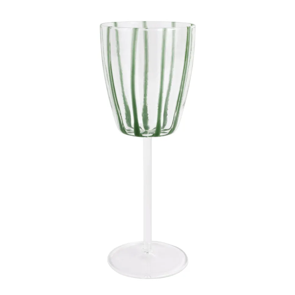 Inspired by Italian lifestyle, history, and culture, VIETRI uses the highest-quality clays from the soil of Italy’s countryside to produce beautiful, everyday items for your home. Hand-painted details, quality glazes, and fine craftsmanship help you savor the moments spent at your table and the company of those who join it. Mouth blown by master artisans, the Nuovo Stripe series features painterly stripes gliding down each glass, resulting in a festive and chic accent to your tabletop. The Nuovo Stripe Green Wine Glass offers an ideally elegant vessel to serve and enjoy all your favorite vintages.