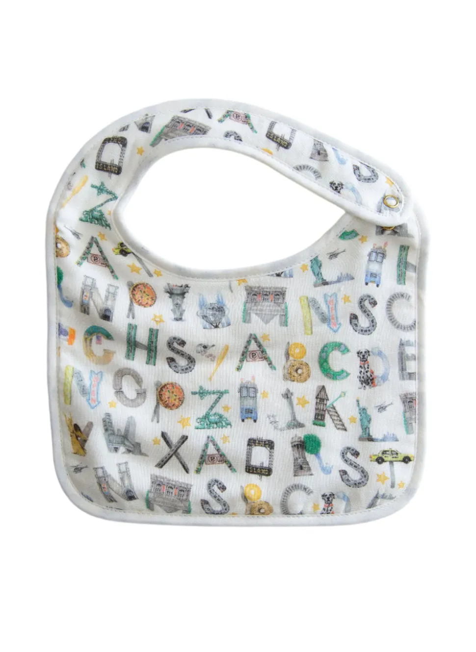 Created to be timeless, sustainable and whimsical, Timo & Violet creates luxury bedding and bath linens for your littlest ones. Looking outward from the very beginning, they develop soft fabrics that are safe for both babies’ skin and the earth, decorating them with artwork by women from around the globe. Crafted in a buttery soft cotton terry layer on the back and a beautiful printed muslin front, the pretty, polished, absorbent NYC Alphabet Soup Bib will have both baby and parent looking forward to meal time. Make it extra special with a monogram.
