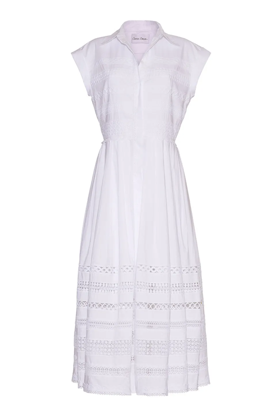 Founded by three New York City-based mothers who met through their kids, Cara Cara’s hallmarks include crisp poplin, house-designed prints, and casual glamour. The inspiration for their ethical womenswear comes from interior design, as well as the world’s most exotic locales. The Octavia Dress in White is a stunning fit-and-flare style. This belted shirtdress comes with a d-ring belt for a feminine silhouette.