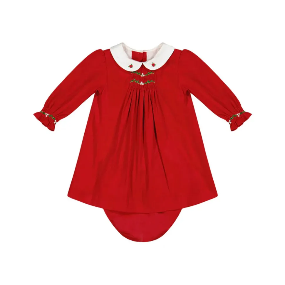 100% cotton. Blouse with holly-embroidered Peter Pan collar and ¾-length sleeves with elasticated cuffs and gentle ruffles. Includes matching bloomers for ease and comfort. Coordinates with the Olympe Red Holiday Dress for a matching sibling look.