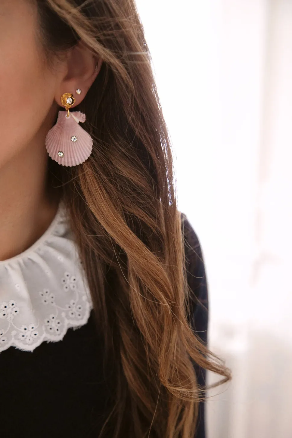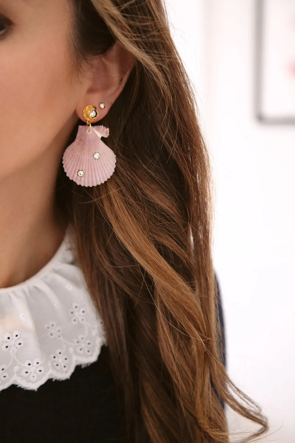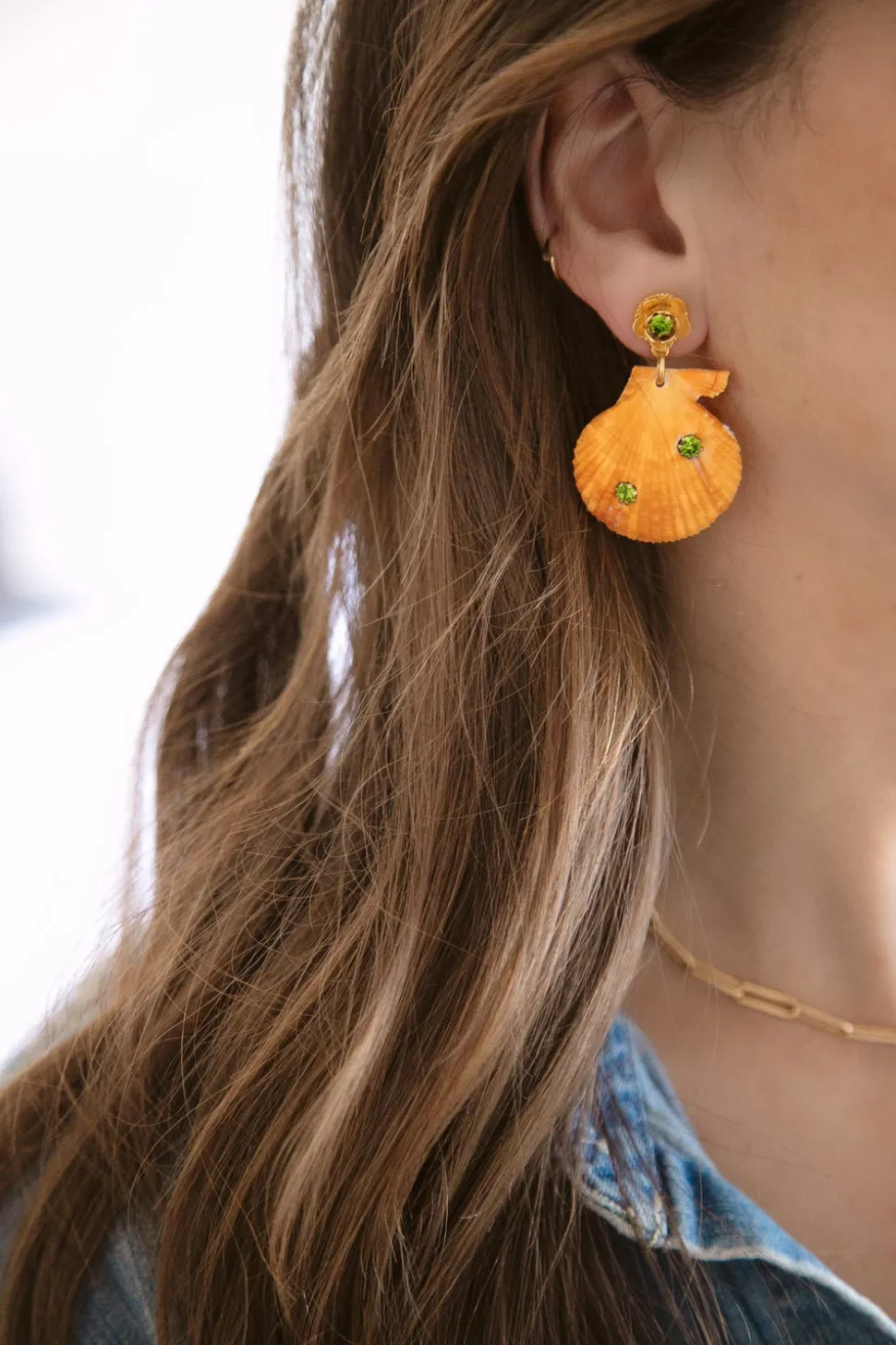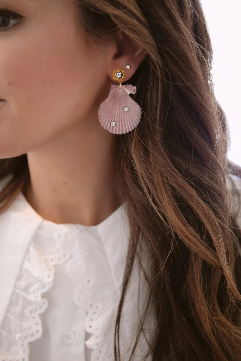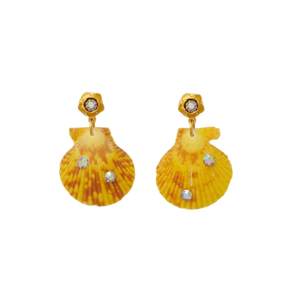 The mother-daughter duo behind Brinker + Eliza combine their experience in metalsmithing and fashion to create incredibly unique jewelry that feels custom-made. Employing pearls, shells, and earth’s most prized organic forms, these are pieces to be not just worn but treasured. It is time for a vacation. The On Holiday Earrings feature Swarovski crystals set in scallop shells hang from 24-karat antique gold-plated flower toppers set with crystals.