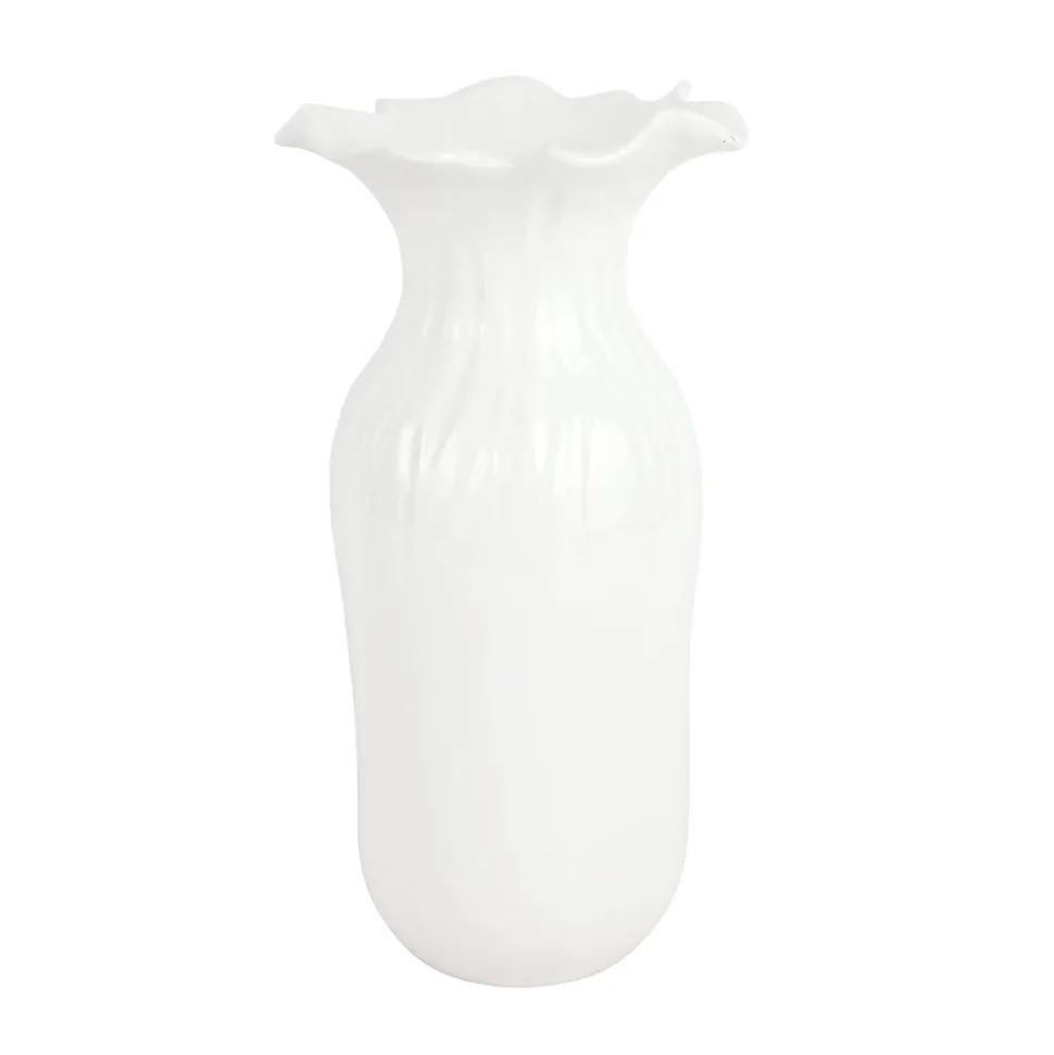 Inspired by Italian lifestyle, history, and culture, VIETRI uses the highest-quality clays from the soil of Italy’s countryside to produce beautiful, everyday items for your home. Hand-painted details, quality glazes, and fine craftsmanship help you savor the moments spent at your table and the company of those who join it. Taking its influence from the gently undulating waves of the Mediterranean Sea, the Ondulata collection is characterized by its rippling, organic shape, as well as colorful florals. The Ondulata White Large Vase is an elegant addition to any room, counter, or tabletop, especially when filled with seasonal cuttings or flowers.