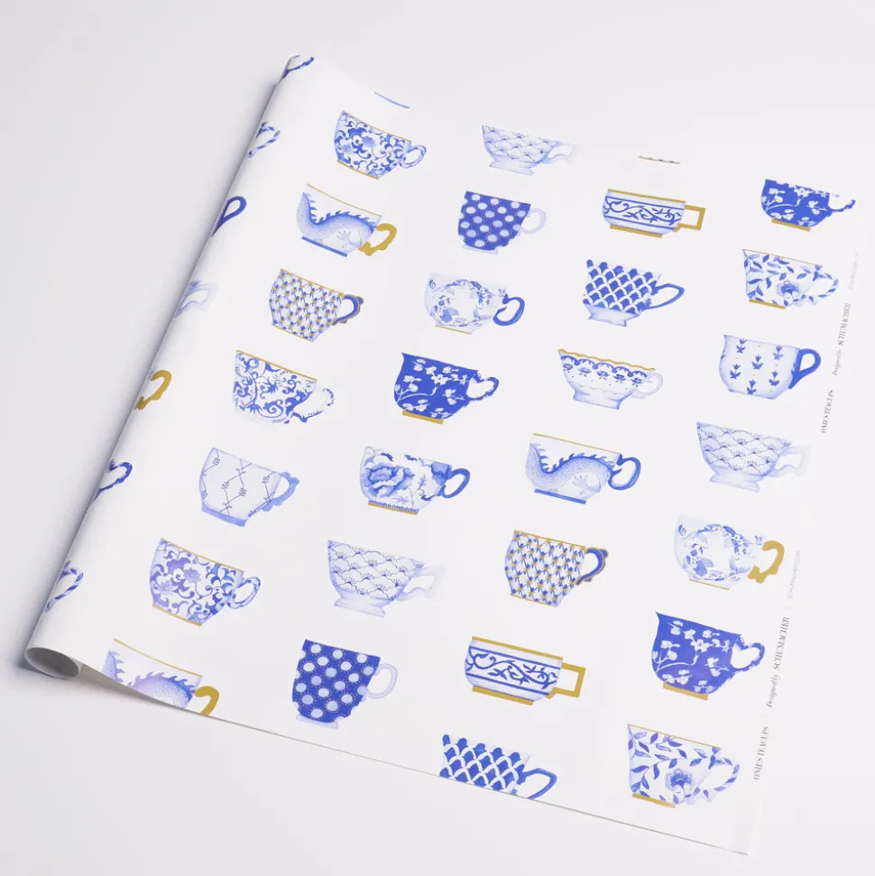 Founded by Frederic Schumacher in 1889 on Fifth Avenue in New York, Schumacher design transcend trends and time with generations-tested unwavering devotion to beauty and quality. Their luxury pillows, fabric, wallpaper, furniture, and paper products allow decorators and shoppers alike to create with total confidence. Decorated with an elegant arrangement of blue and white porcelain teacups, punctuated with bits of gold, the Onie’s Teacups Wrapping Paper In Porcelain makes every gift exceptional.