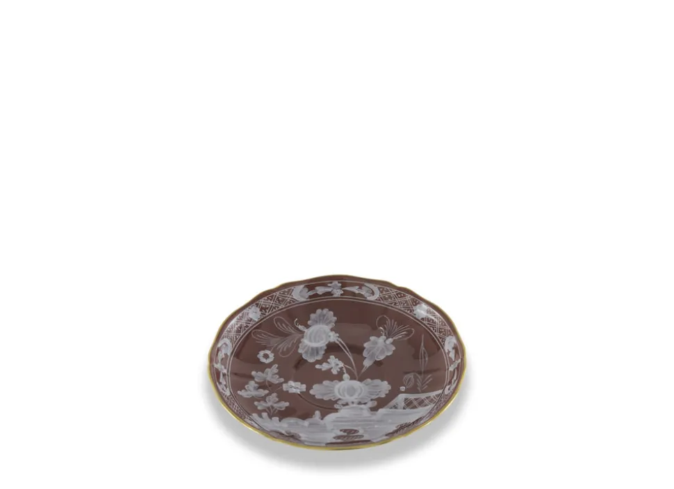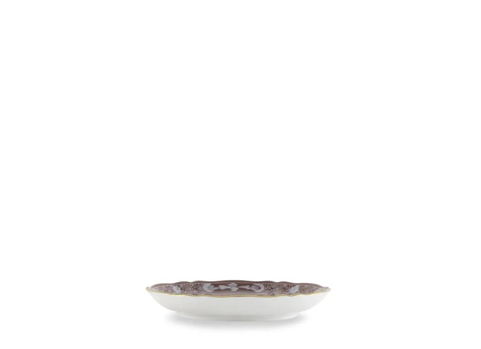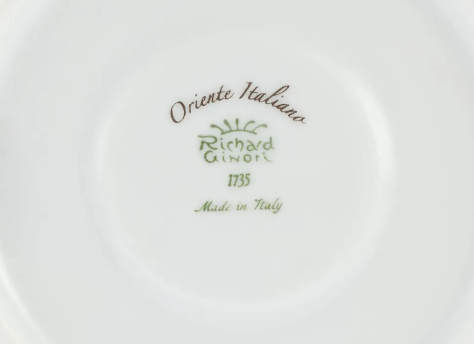 For nearly 300 years, Ginori 1735 has intertwined manufacturing excellence and timeless elegance from the family‚ estate in Doccia, Tuscany. Through the Baroque and romanticism, into the modern era‚guided by creative director Gio Ponti‚and beyond, the storied tableware and home decor brand‚ focus remains the same: turning porcelain into pure beauty. The Oriente Italiano collection combines the charms of the floral motifs found in Faenza ceramics, with the explosive colors and traditional shapes. Handcrafted of porcelain with a gold-plated rim, the Oriente Italiano Antico Doccia Tea Saucer in Castagna is a sophisticated accompaniment for your tea cup that also protects your most valued surfaces.