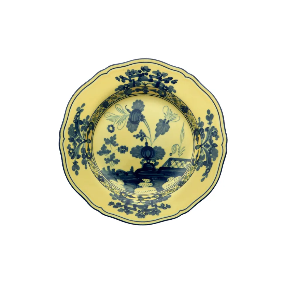 For nearly 300 years, Ginori 1735 has intertwined manufacturing excellence and timeless elegance from the family‚ estate in Doccia, Tuscany. Through the Baroque and romanticism, into the modern era‚guided by creative director Gio Ponti‚and beyond, the storied tableware and home decor brand‚ focus remains the same: turning porcelain into pure beauty. TheOriente Italiano collection combines the charms of the floral motifs foundin Faenza ceramics with explosive colors and traditional shapes.The Oriente Italiano Bread Plate in Citrinoisa refined and artful way to serve your breads, crackers, small apps, and your other favorite additions.