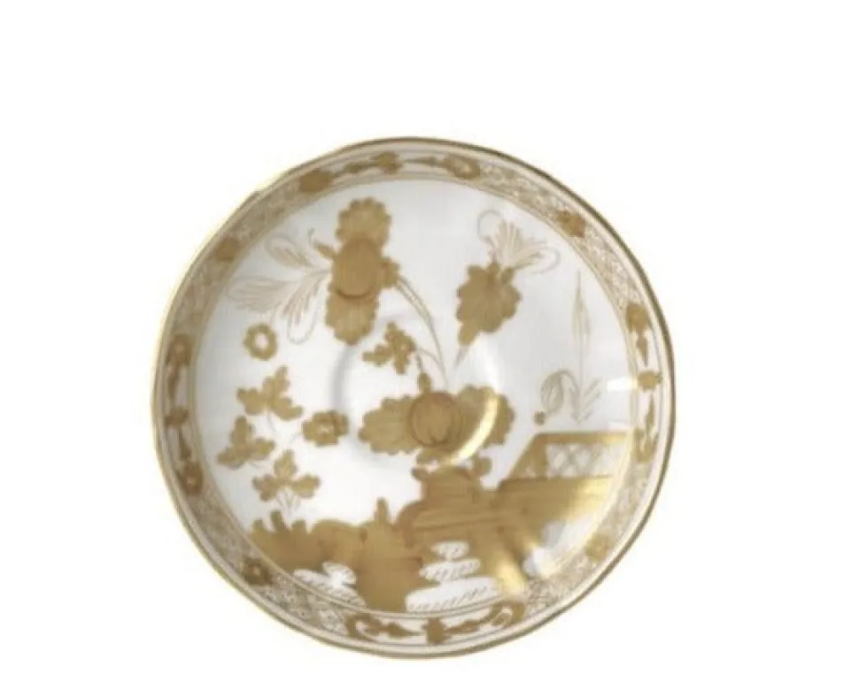 For nearly 300 years, Ginori 1735 has intertwined manufacturing excellence and timeless elegance from the family‚ estate in Doccia, Tuscany. Through the Baroque and romanticism, into the modern era‚guided by creative director Gio Ponti‚and beyond, the storied tableware and home decor brand‚ focus remains the same: turning porcelain into pure beauty.Crafted in fine, hand-painted porcelain, with bold shades contrasted with a floral motif, the delicate decorations of the Oriente series evoke the atmosphere of an imaginary oriental garden. The Oriente Italiano Coffee Saucer in Aurumis a delightful and refined way to enjoy morning coffee or afternoon tea.