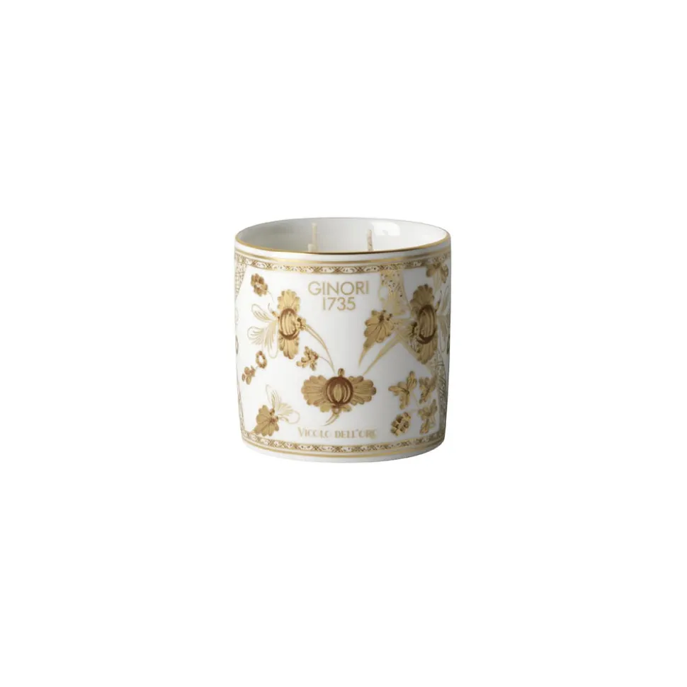 For nearly 300 years, Ginori 1735 has intertwined manufacturing excellence and timeless elegance from the family‚ estate in Doccia, Tuscany. Through the Baroque and romanticism, into the modern era‚guided by creative director Gio Ponti‚and beyond, the storied tableware and home decor brand‚ focus remains the same: turning porcelain into pure beauty. TheOriente Italiano collection combines the charms of the floral motifs foundin Faenza ceramics,withthe explosive colors and traditional shapes. Oriente Italiano Large Scented Candle in Aurum is an artfuland elegant wayto enliven any room with a floral, musky fragrance.