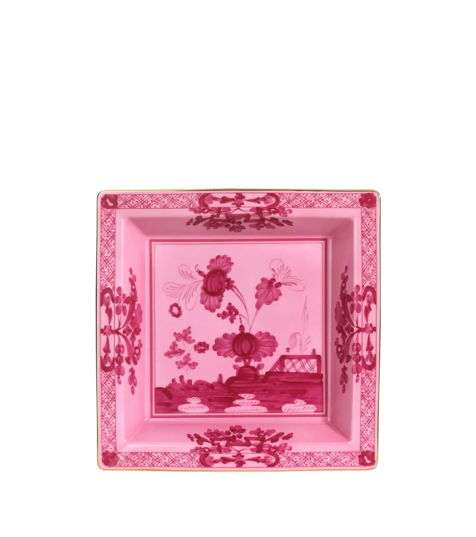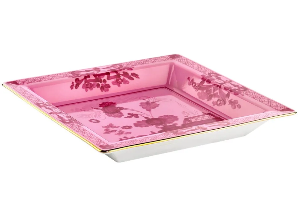 For nearly 300 years, Ginori 1735 has intertwined manufacturing excellence and timeless elegance from the family‚ estate in Doccia, Tuscany. Through the Baroque and romanticism, into the modern era‚guided by creative director Gio Ponti‚and beyond, the storied tableware and home decor brand‚ focus remains the same: turning porcelain into pure beauty. TheOriente Italiano collection combines the charms of the floral motifs foundin Faenza ceramics,withthe explosive colors and traditional shapes. TheOriente ItalianoLarge Squared Vide Poche in Porporaisa refined and artful receptacle for everything from your wallet and keys, to your phone, change and jewelry.