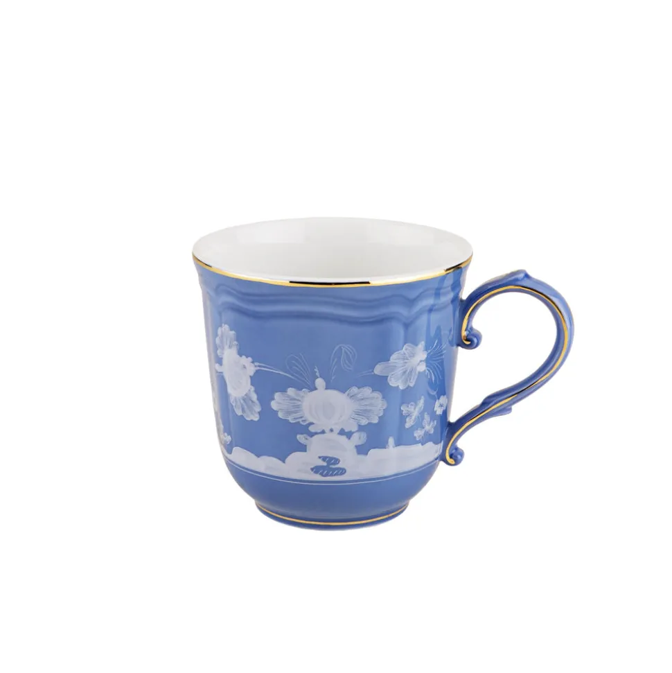 For nearly 300 years, Ginori 1735 has intertwined manufacturing excellence and timeless elegance from the family‚ estate in Doccia, Tuscany. Through the Baroque and romanticism, into the modern era‚guided by creative director Gio Ponti‚and beyond, the storied tableware and home decor brand‚ focus remains the same: turning porcelain into pure beauty. The Oriente Italiano collection combines the charms of the floral motifs found in Faenza ceramics, with the explosive colors and traditional shapes. The Oriente Italiano Mug in Pervinca is a refined and artful way to serve coffee after dinner, or enjoy an afternoon tea.