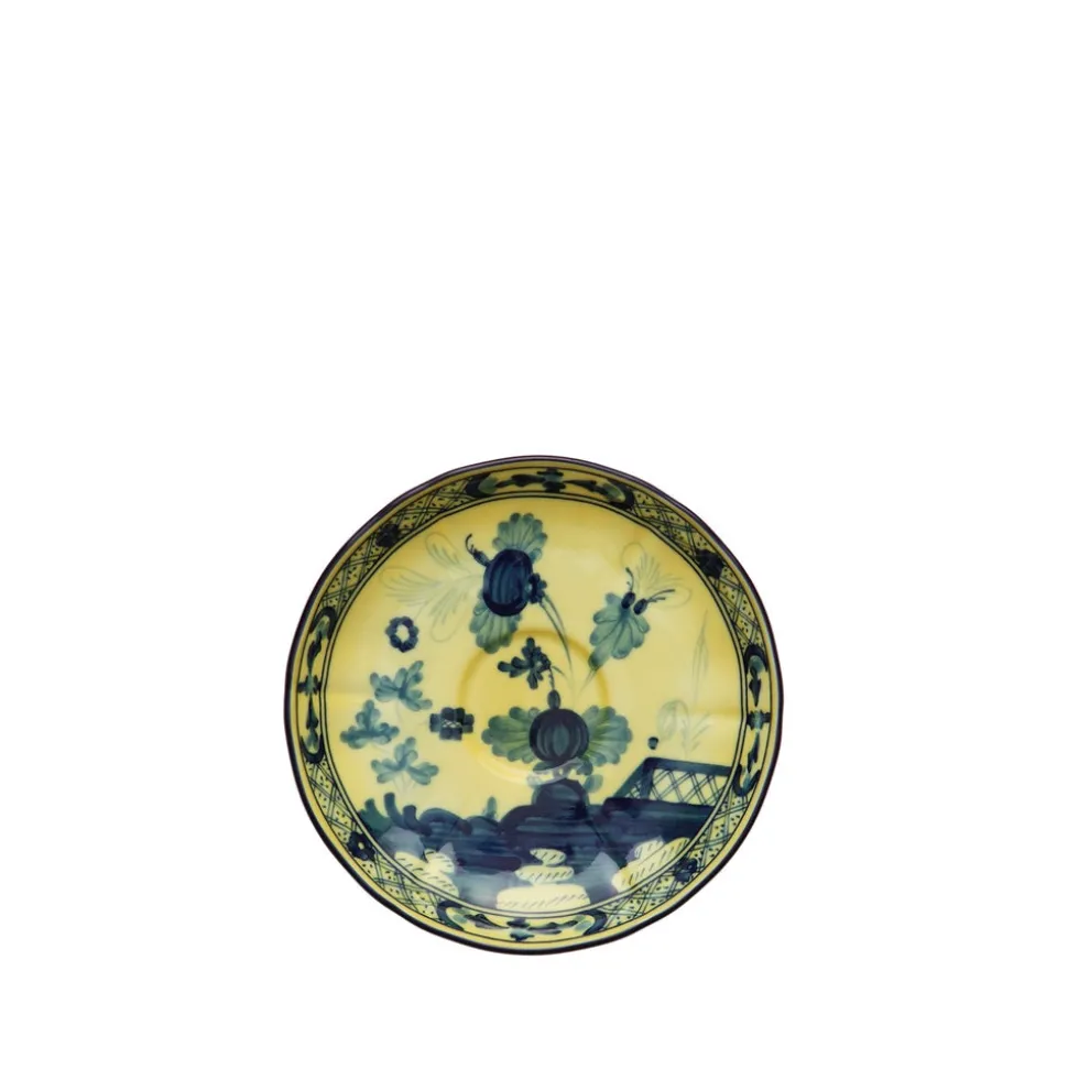For nearly 300 years, Ginori 1735 has intertwined manufacturing excellence and timeless elegance from the family‚ estate in Doccia, Tuscany. Through the Baroque and romanticism, into the modern era‚guided by creative director Gio Ponti‚and beyond, the storied tableware and home decor brand‚ focus remains the same: turning porcelain into pure beauty. TheOriente Italiano collection combines the charms of the floral motifs foundin Faenza ceramics,withthe explosive colors and traditional shapes. TheOriente Italiano Tea Saucer in Citrinoisa refined and artfulway to serve up coffee after dinner, or enjoy an afternoon tea.