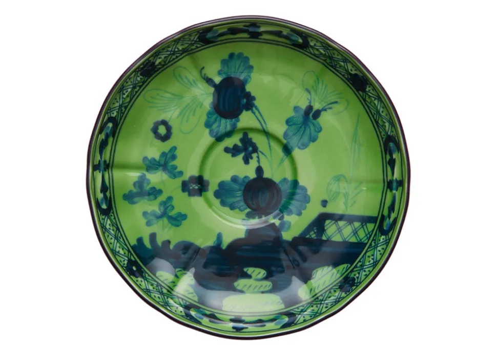 For nearly 300 years, Ginori 1735 has intertwined manufacturing excellence and timeless elegance from the family‚ estate in Doccia, Tuscany. Through the Baroque and romanticism, into the modern era‚guided by creative director Gio Ponti‚and beyond, the storied tableware and home decor brand‚ focus remains the same: turning porcelain into pure beauty. TheOriente Italiano collection combines the charms of the floral motifs foundin Faenza ceramics,withthe explosive colors and traditional shapes. TheOriente Italiano Tea Saucer in Malachiteisa refined and artfulway to serve up coffee after dinner, or enjoy an afternoon tea.