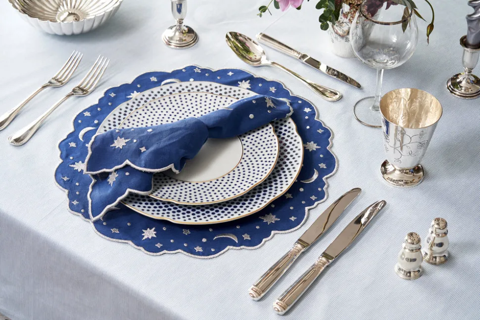Turn to Loulou La Dune for all your creative linen wants and needs. Based in Istanbul, La Dune is an artisan with an architecture background, and when it comes to her designs, she knows that every color in the rainbow makes for beautiful hand embroidery. The Astral Linen Placemat in Ice Blue and Ice Blue Embroidery is an OTM exclusive and will elevate any gathering this season.