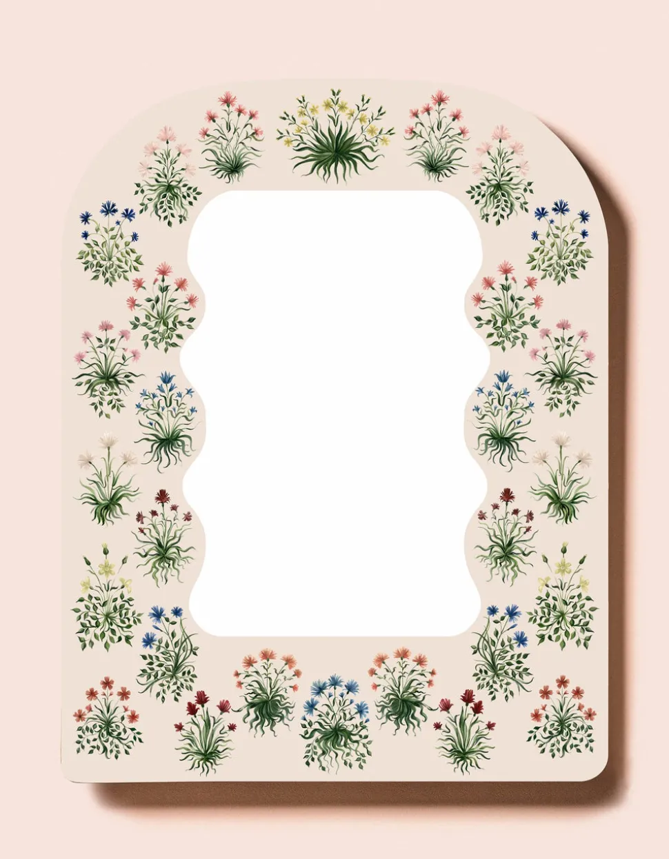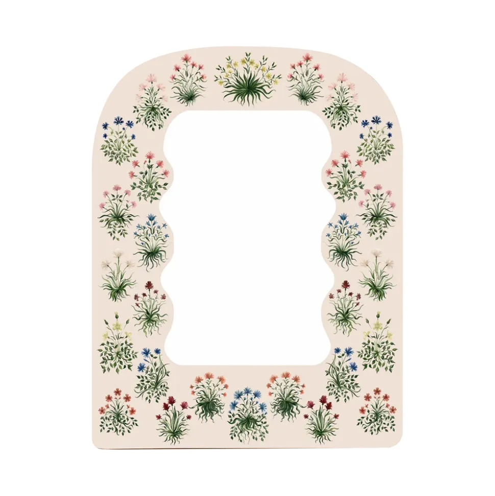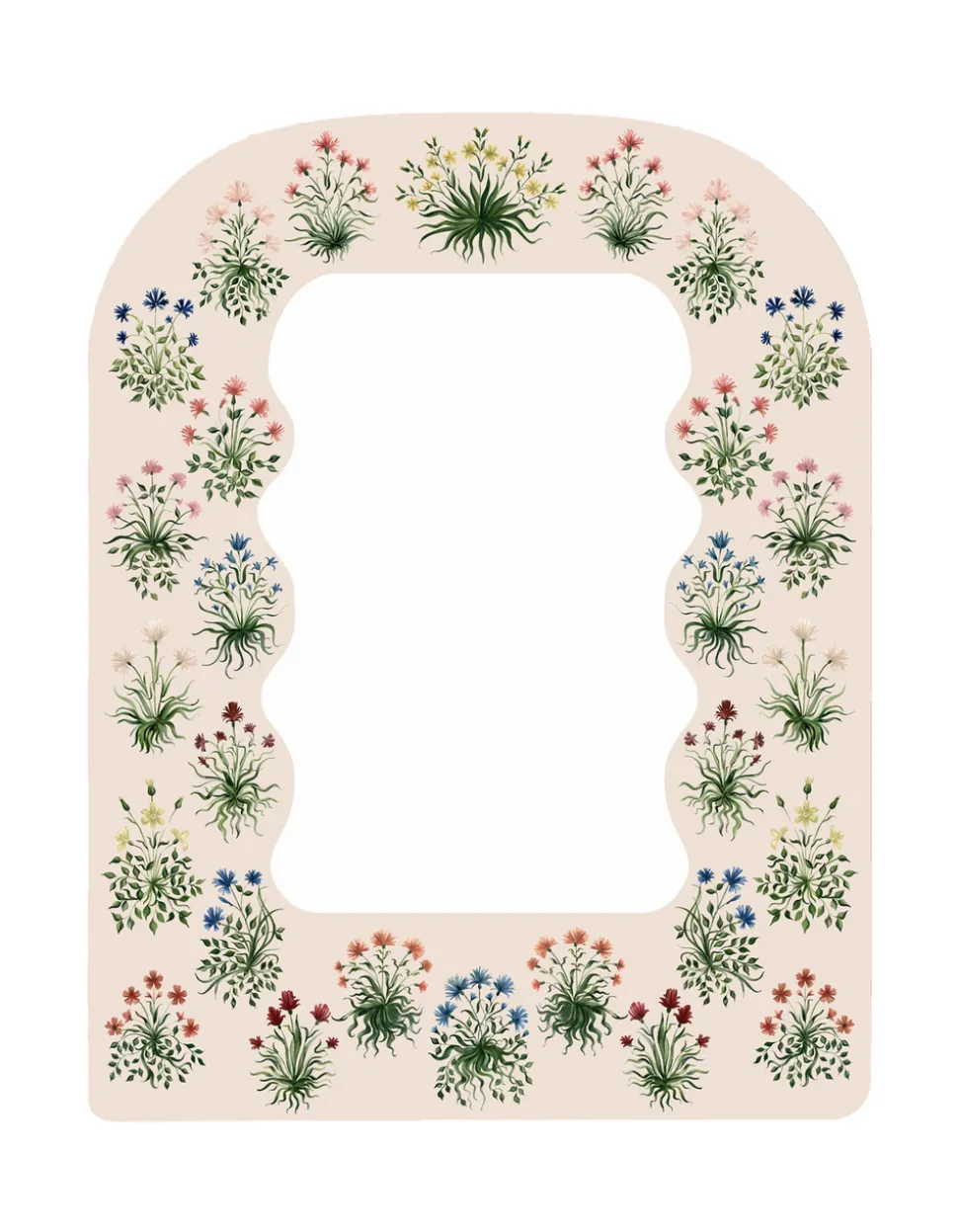 Fleur Home’s founder Natalie Erwin showed artist Riley Sheehey the inspiration images for her newest mirror collection: a dress from Botticelli’s Primavera and an antique, botanical painting of auricula flowers—and, Riley knew immediately that they’d be a perfect match for this collaboration. The Jaipur Print Mirror her small, wispy hand-painted floral illustrations in a rounded, portail shape and is part of the Limited Edition Garden District Collection. This item is also available in a larger size.