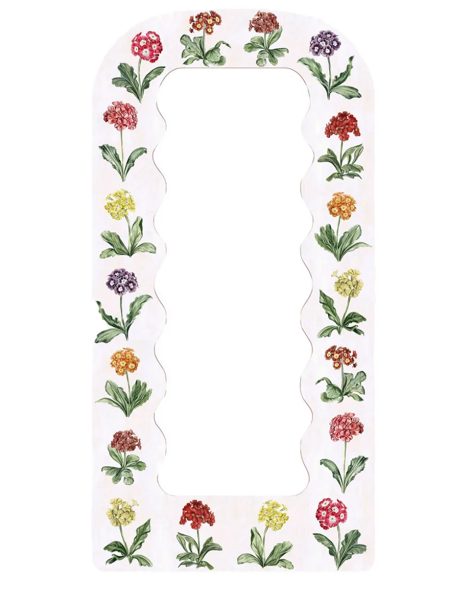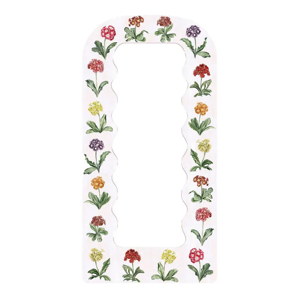 Fleur Home’s founder Natalie Erwin showed artist Riley Sheehey the inspiration images for her newest mirror collection: a dress from Botticelli’s Primavera and an antique, botanical painting of auricula flowers—and, Riley knew immediately that they’d be a perfect match for this collaboration. The Primrose Print Large Mirror features large, whimsical hand-painted floral illustrations in a rounded, portal shape. This item is also part of the Limited Edition Garden District Collection.