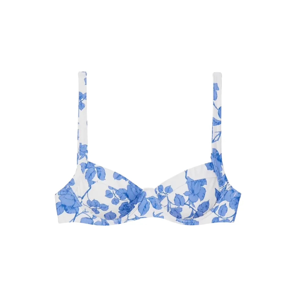 Michelle Marie, founder of Sister Swim, built her brand around her vision of swimwear’s fundamentals: style, innovation, comfort, and confidence. Boasting clean lines, precise measurements, and unique prints, her collections do not stand out from the wearer but instead accentuate natural beauty. Designed with support and shape in mind, the flattering OTM Exclusive: Grace Top in White Blue Floral holds and lifts everything into one place. Complete with a demi shaped underwire cup, adjustable shoulder straps and a back tie closure for a custom fit.