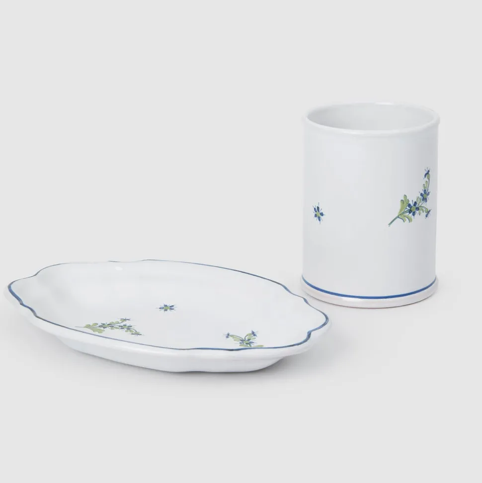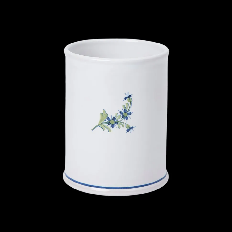 Z.d.G by Zoë de Givenchy’s French-made ceramics, linen, and flatware display refinement above all else. This, and a certain je ne sais quoi, were gleaned from the table of her husband’s uncle, Hubert de Givenchy, the legendary couturier, and one of the century’s finest hosts. The designs breathe new life into master artisan techniques, as showcased with the Les Bleuets capsule collection. This Tumbler, printed with a green and blue Cornflower—a traditional motif in French porcelain and a favorite of Marie Antoinette—was created to sit in the bathroom as a chic toothbrush or make-up brush holder and matching soap dish.