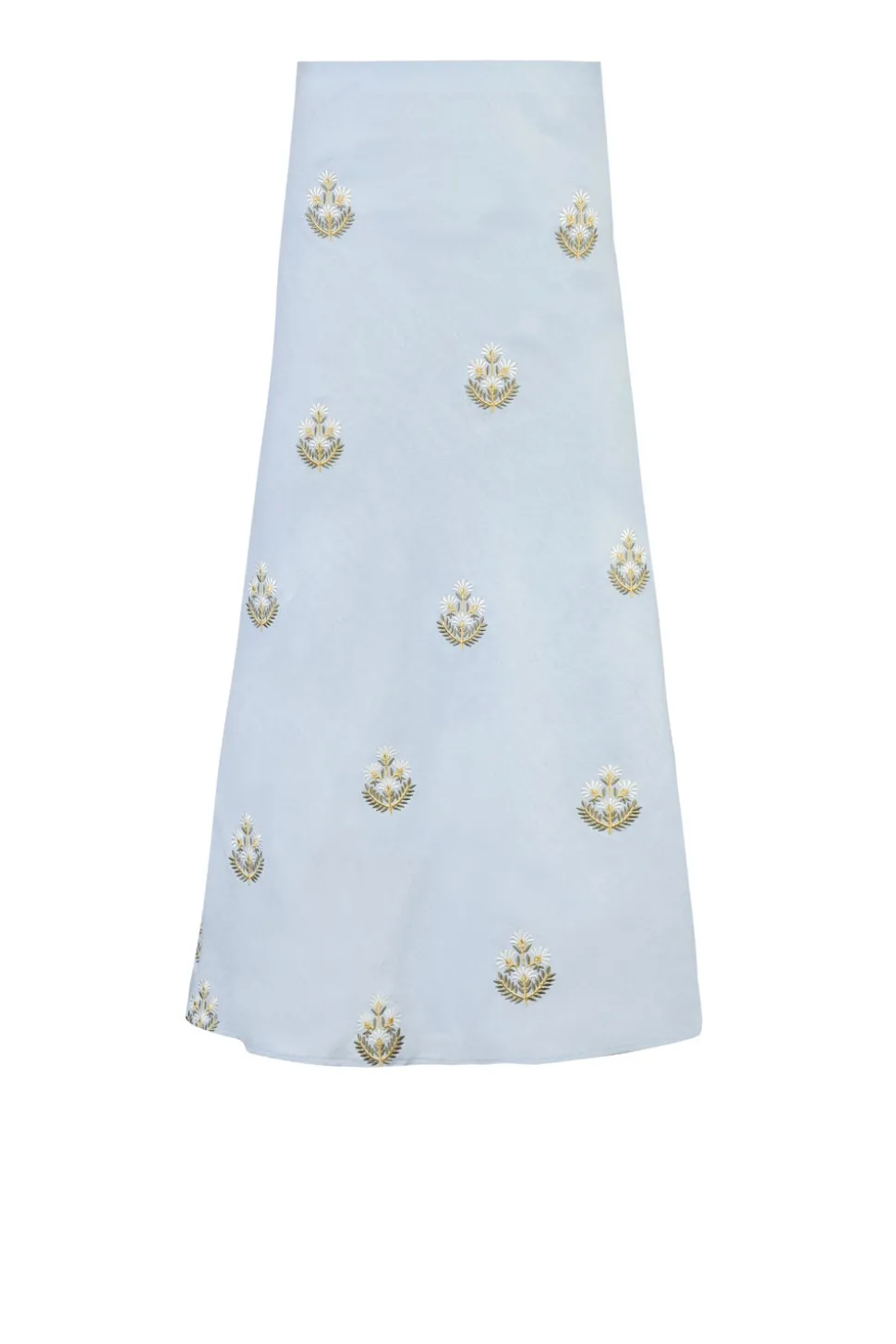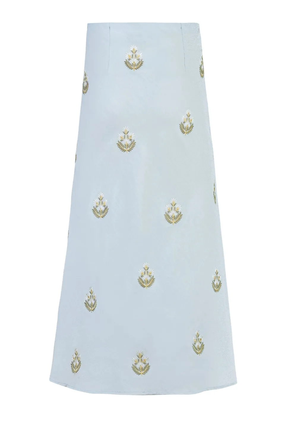 The brainchild of dynamic Iranian mother-daughter duo, Roshanak Varasteh and Leily Amirsardary Ahmed, RosewaterHouse is more than a fashion label; it is a testament to heritage, artisanal craftsmanship, and timeless design. Drawing inspiration from their cherished family heirlooms, Roshanak and Leily pay homage to the rich cultural tapestry of the Middle East, working exclusively with local artisans who breathe new life into age-old techniques, creating exquisite, limited-edition garments that transcend age, style, and trends. These pieces are sure to become some of your most treasured. Exclusive to Over The Moon, the Mina Skirt is a delicately embroidered and figure enhancing mid-length linen slip skirt with bowtie straps.