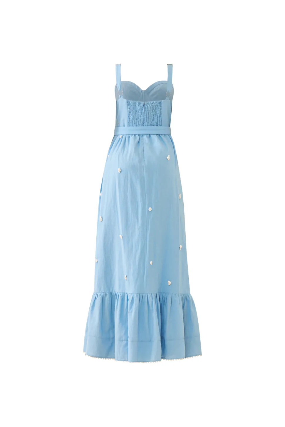 Tomboy looks, girly-girl styles, and an always fashionable approach define Eddy’s aesthetic. With a focus on bold and feminine silhouettes, Eddy dresses and tops pair elevated California bohemian with global inspiration; these are clothes designed to make you feel good inside and out. The Reba Dress boasts angled tiers on one side, finished with delicate lace, creating effortless movement. Adjustable straps and a removable waist belt let you customize the fit, while soft back smocking and a structured bust offer support. Adorned in baroque pearls and tiered hems lined with traditional pearl beads, it’s the perfect balance of romance and ease.