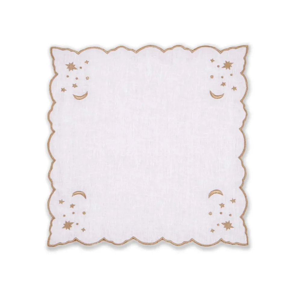 Turn to Loulou La Dune for all your creative linen wants and needs. Based in Istanbul, La Dune is an artisan with an architecture background, and when it comes to her designs, she knows that every color in the rainbow makes for beautiful hand embroidery. The Astral Linen Napkin in White Linen and Gold Embroidery is part of her Holiday collection and will elevate any gathering this season.