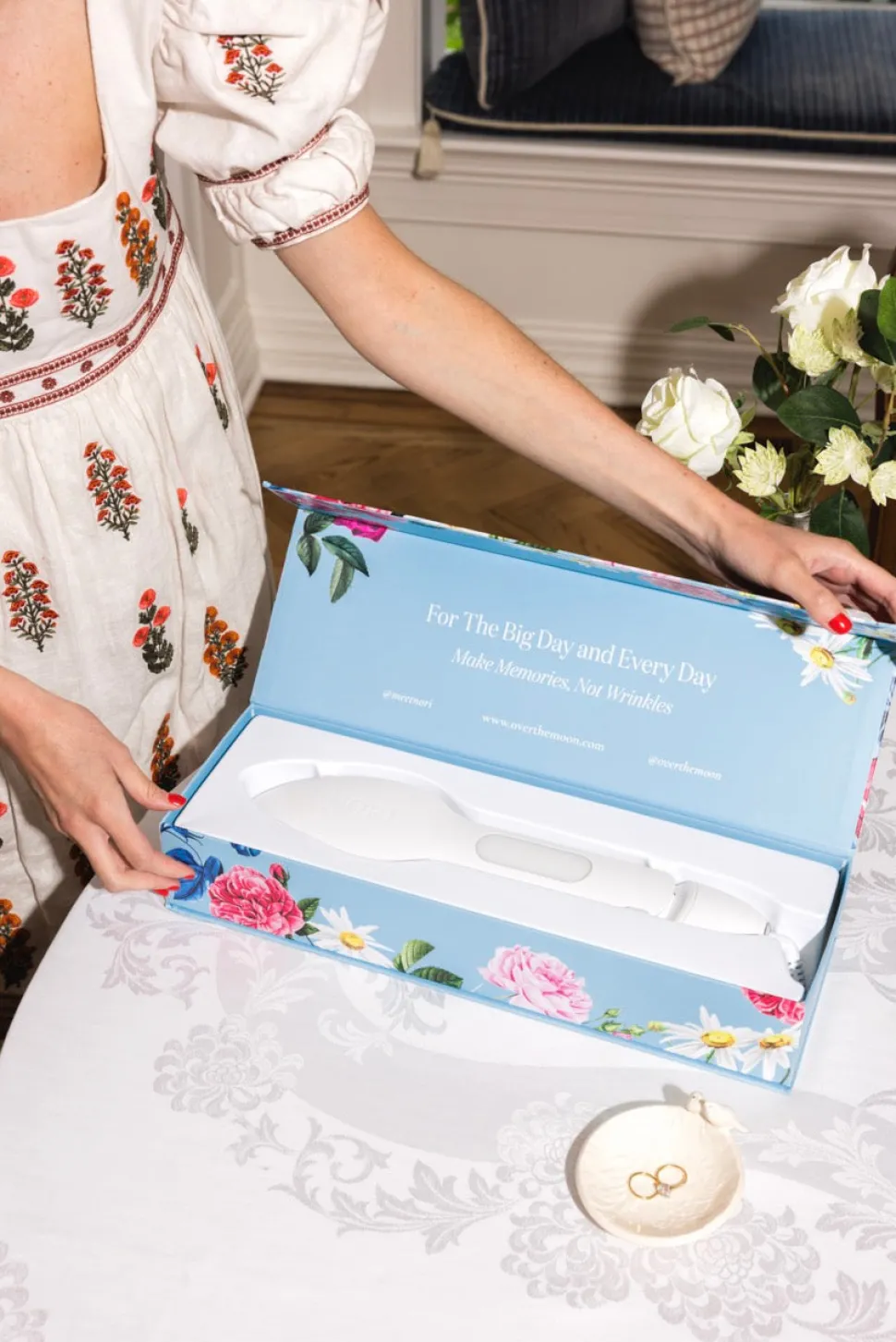 From founders Annabel Love and Courtney Toll comes the Nori Press, an innovative steam iron that eliminates wrinkles, cuts down on expensive dry cleaning, and leaves your clothes looking flawless without having to worry about ironing boards, leakage, or burn marks. Exclusive to Over The Moon, this Nori Press arrives at your doorstep in a beautifully designed floral motif box. Built with non-stick aluminum plates, we love the sleek and sturdy design that somehow manages to stay lightweight. Boasting an eight-foot swivel power cord, it is easy to use, while six fabric-specific heat settings provide versatility. Best of all, there are built-in tilt sensors to ensure automatic shut off after 10 minutes of no movement—so it is safe, too. It’s the ideal gift for the bride on her big day and beyond.