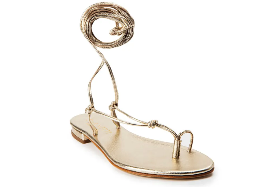 California-born designer Claudia Lucia Aragon dreamt up Cornetti while living and studying along the Amalfi Coast. Each sandal is meticulously crafted to last for long, well-loved summers—made from the highest quality and mindfully sourced leathers. Cornetti, which translates to “little bull horns,” is a symbol of luck that has been defined by Italian culture since ancient times. The Otranto in Gold is a wrap-up style sandal with elongated calfskin laces that wind gracefully up the leg, blending elegance with ease