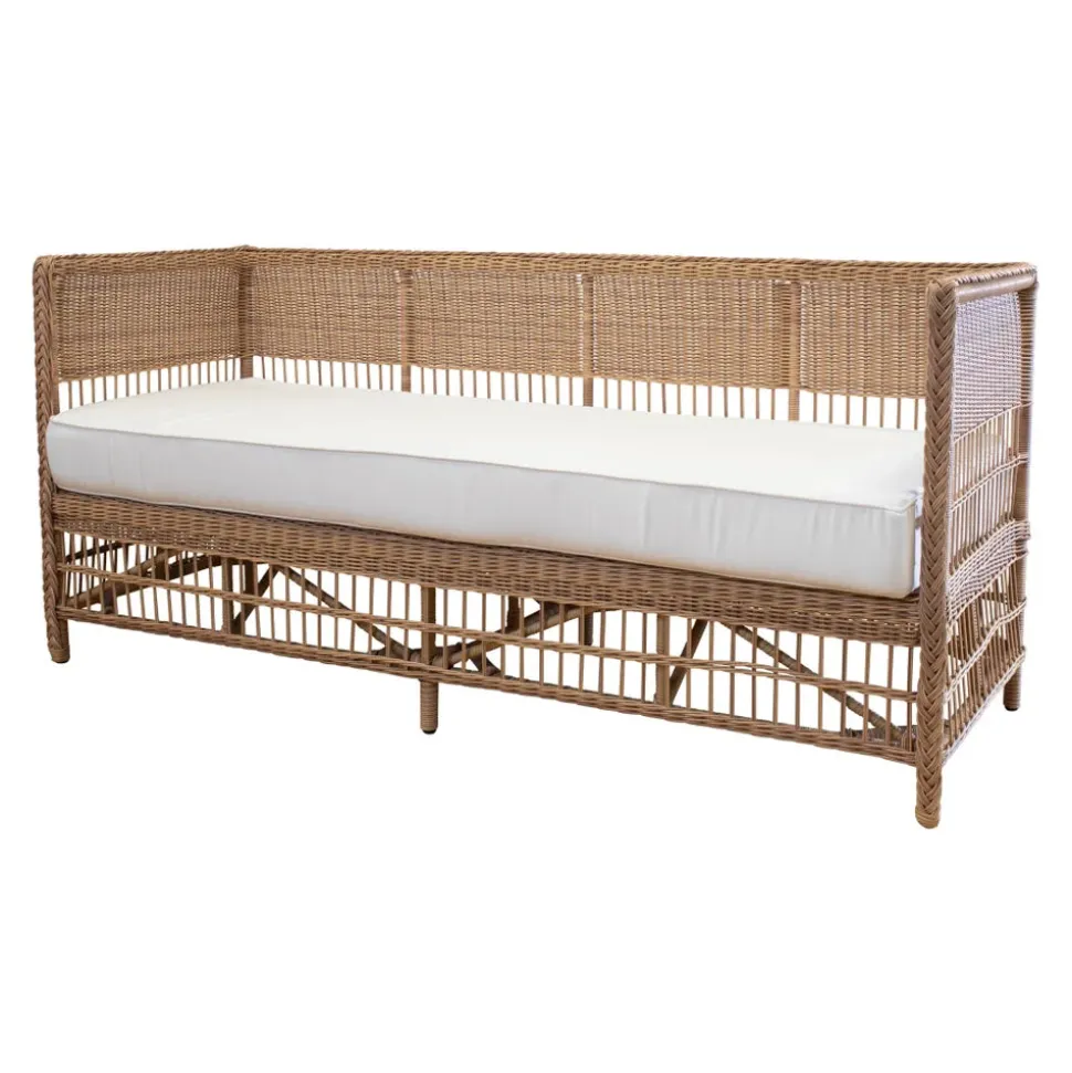 Mainly Baskets Home is dedicated to crafts made of rattan and the ancient and beloved process of weaving known as wicker. Inspired by antique and vintage designs, as well as talented collaborators and skilled artisans, these pieces share a sense of both quality and timelessness. The Outdoor Vineyard Daybed features a lovely weave pattern that provides an elevated look for your outdoor space. An optional cushion is available in a versatile Sunbrella fabric.