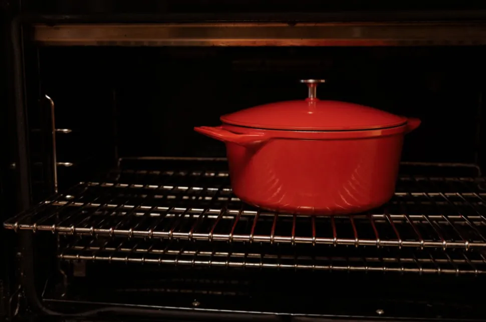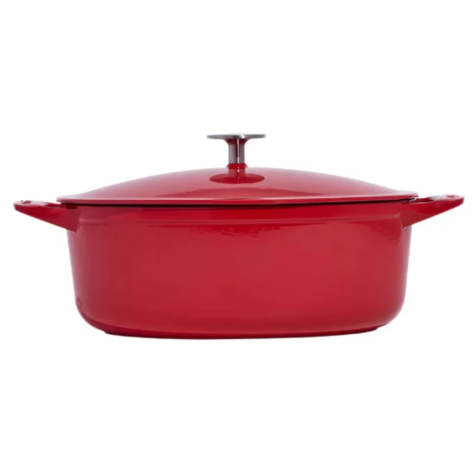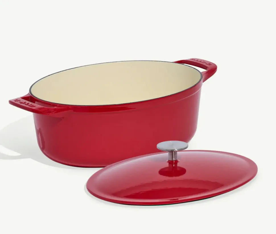 Oval Enameled Cast Iron Dutch Oven in Made In Red