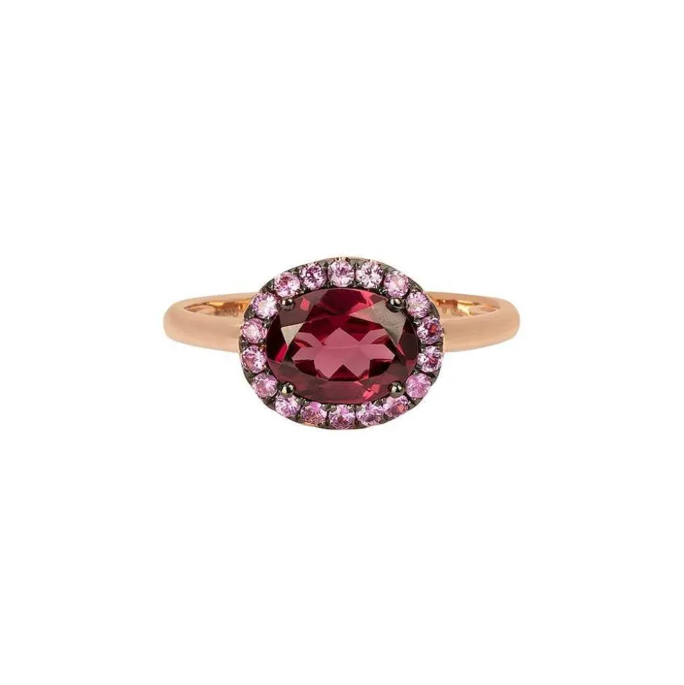 Garnet and pink sapphire: 18k, 1.83ct, 17 sapphires 0.50ct.
