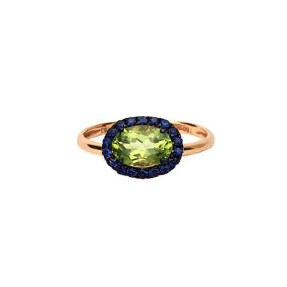 Peridot and blue sapphire: 18k, 1 pr 1.25ct, 18 sapphires 0.21ct.