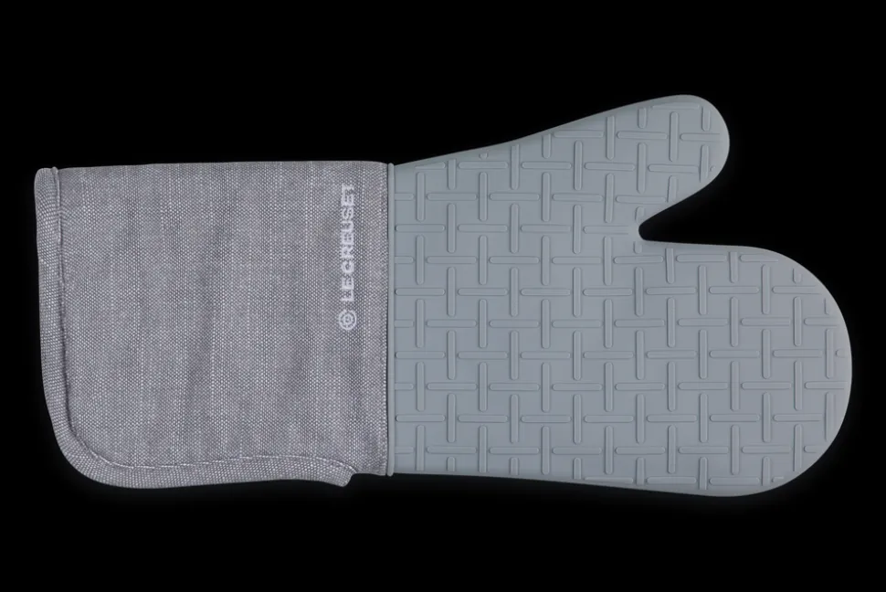 Recognized for its strength and durability, as well as its beauty and quality, Le Creuset produced the first enameled cast iron cookware nearly a century ago. A tradition of maintaining the finest culinary craftsmanship, combined with the latest innovations, means Le Creuset is known for blending classic form with real function and that it’s made for home cooks and professional chefs alike. Designed for safety and extended coverage, the Oven Mitts 15″ in Charbon protect wrists and forearms when transferring hot cookware from oven to table. Crafted from durable silicone with a soft terry cloth interior, this thoughtfully designed mitt combines comfort, grip, and heat resistance in a single essential kitchen tool.