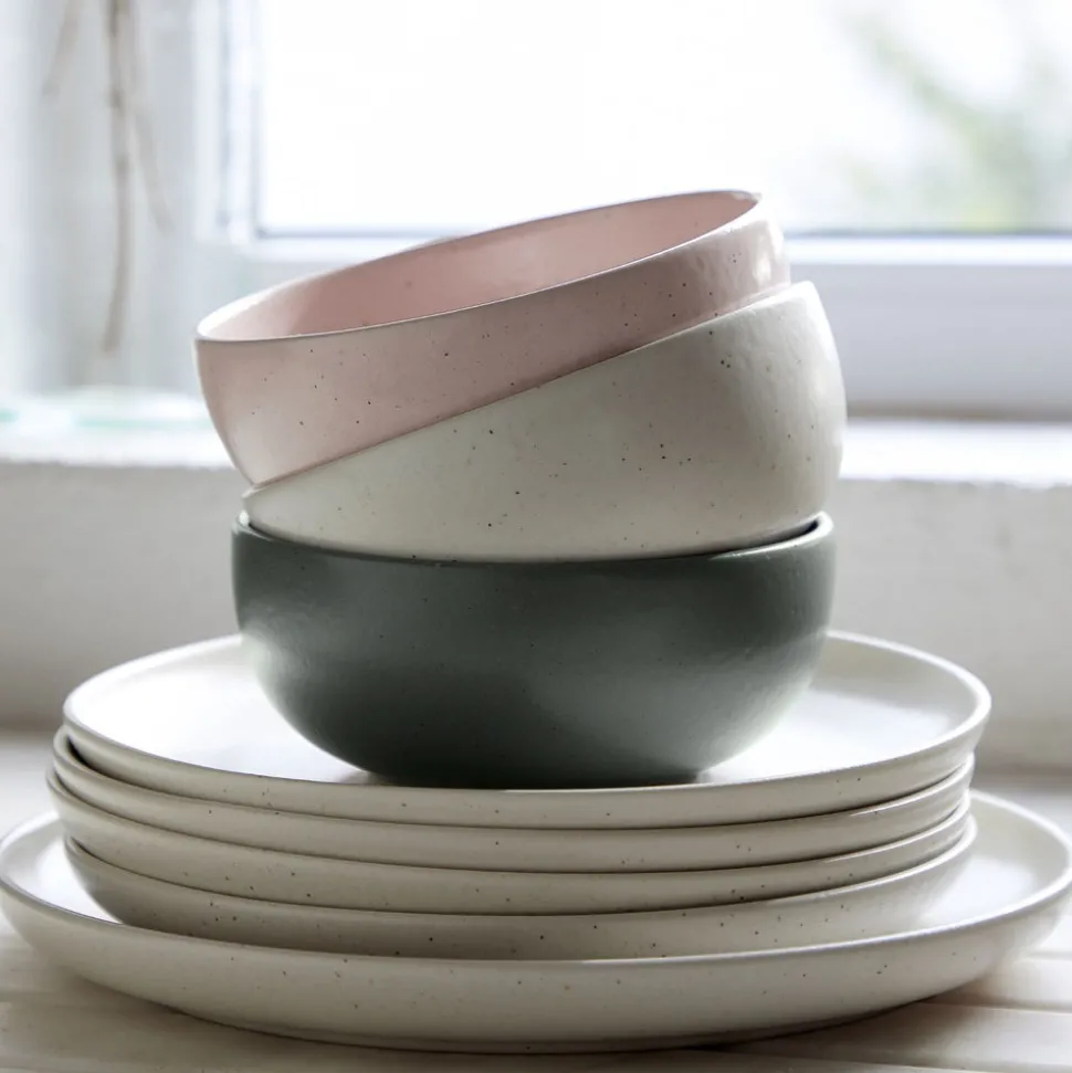 Set of 6. Fine stoneware. Matte glaze. Stackable. Stain resistant. Chip resistant.
