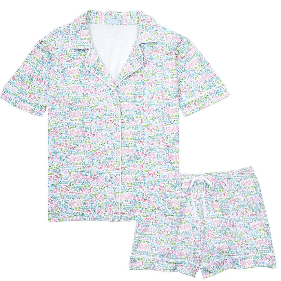 Designed with a mom’s love and made with care, Boston-based Joy Street produces small-batch kids clothes that look classic from afar, but delight in details. Crafted in luxurious 100% Peruvian pima cotton in a female-run factory, every print is hand-drawn by the brand’s founder, a new mom who prizes fit and quality above all else, and isn’t afraid of a little fun. The Palm Beach Women’s Button Front Short Pajama Set with playful renderings of Palm Beach landmarks boasts a soft and durable construction that both you and your family will love.