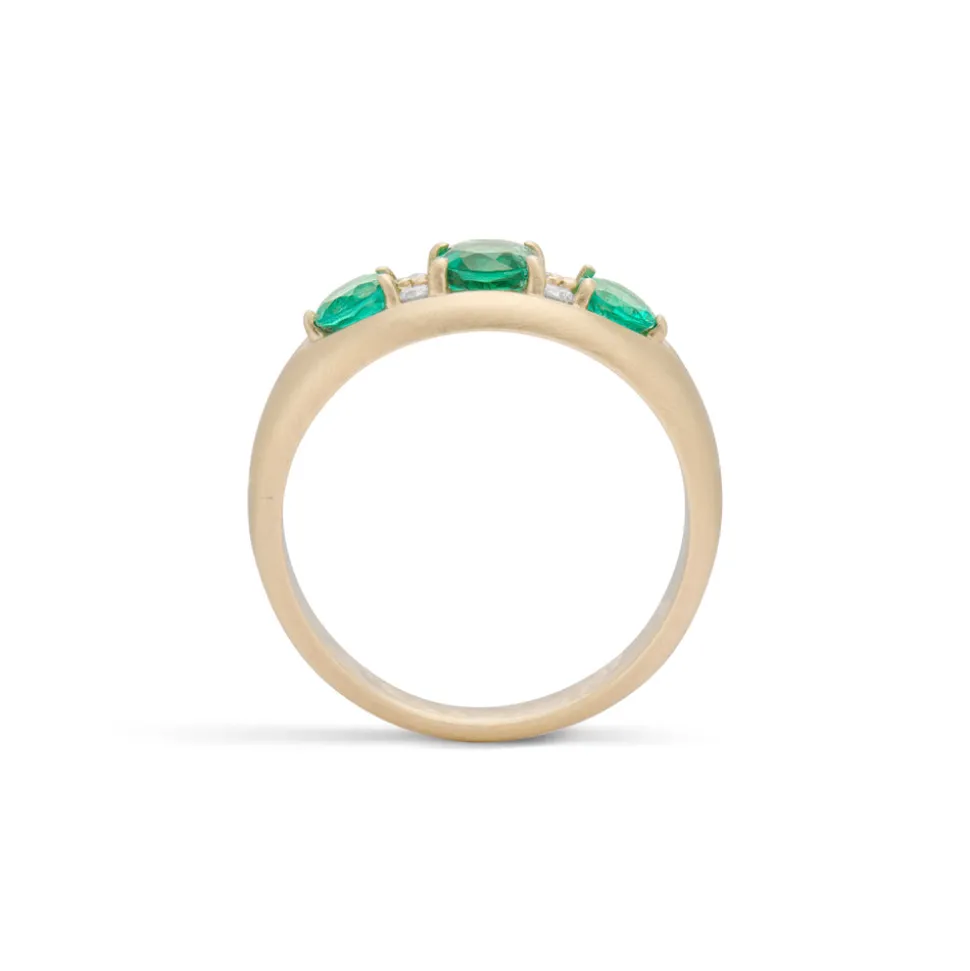 From her studio in New York City, Ashley Zhang designs one-of-a-kind fine jewelry that will last a lifetime. A classic ring, the Paloma Emerald and Diamond Ring was inspired by the antique English Victorian style, with three vibrant green emeralds set in a row, and four sparkly modern round brilliant diamonds set in between. We love how the green emeralds provide the perfect subtle pop of color for any outfit.