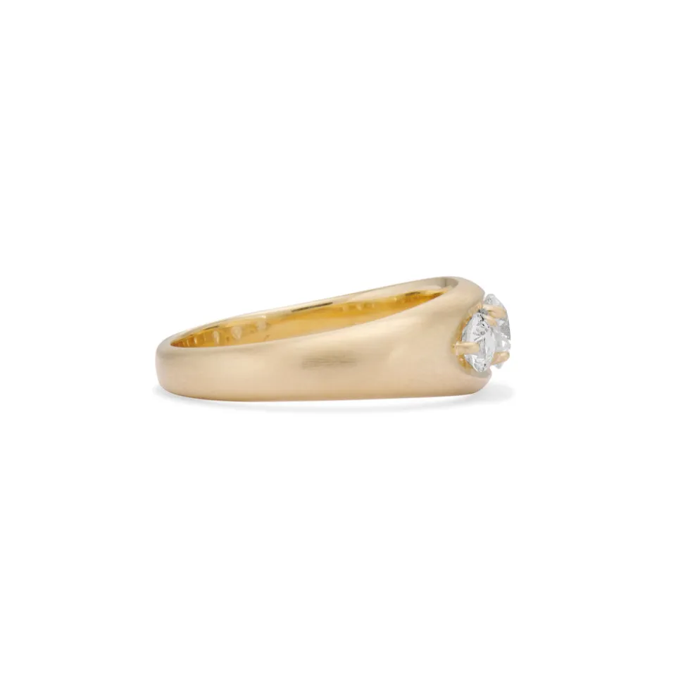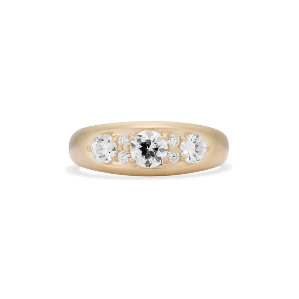 From her studio in New York City, Ashley Zhang designs one-of-a-kind fine jewelry that will last a lifetime. A classic ring, the Paloma Old Mine Cut Diamond Ring is inspired by antique Victorian style, with three old mine cut diamonds set in a row with four sparkly modern round brilliant diamonds set in between, all in 14 karat yellow gold with a satin finish. Impressively, the diamonds are all set with open backs to allow light to shine through maximize brilliance.