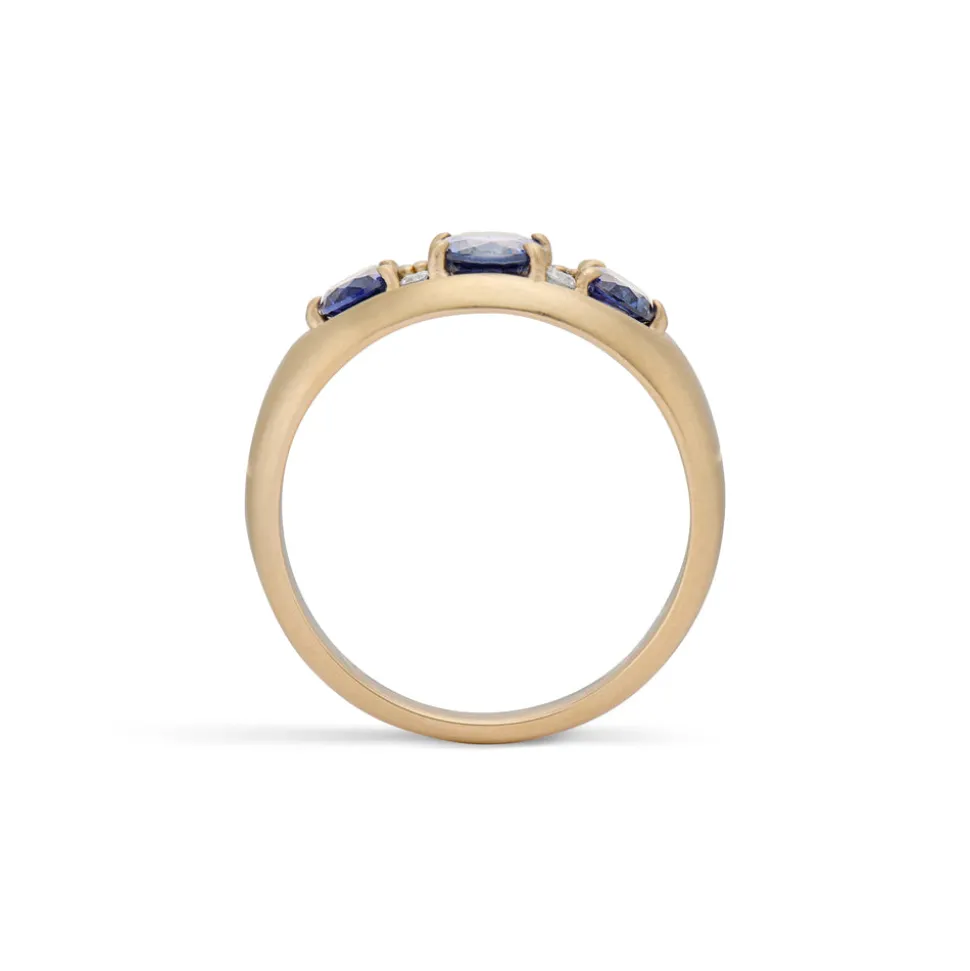 From her studio in New York City, Ashley Zhang designs one-of-a-kind fine jewelry that will last a lifetime. A classic ring, the Paloma Old Mine Cut Diamond Ring is inspired by antique Victorian style, with three blue sapphires set in a row with four sparkly modern round brilliant diamonds set in between, all in 14 karat yellow gold with a satin finish. We love how the blue sapphires provide the ideal subtle pop of color for any outfit.