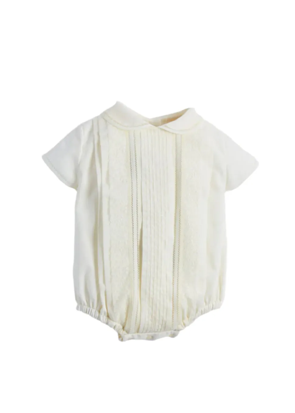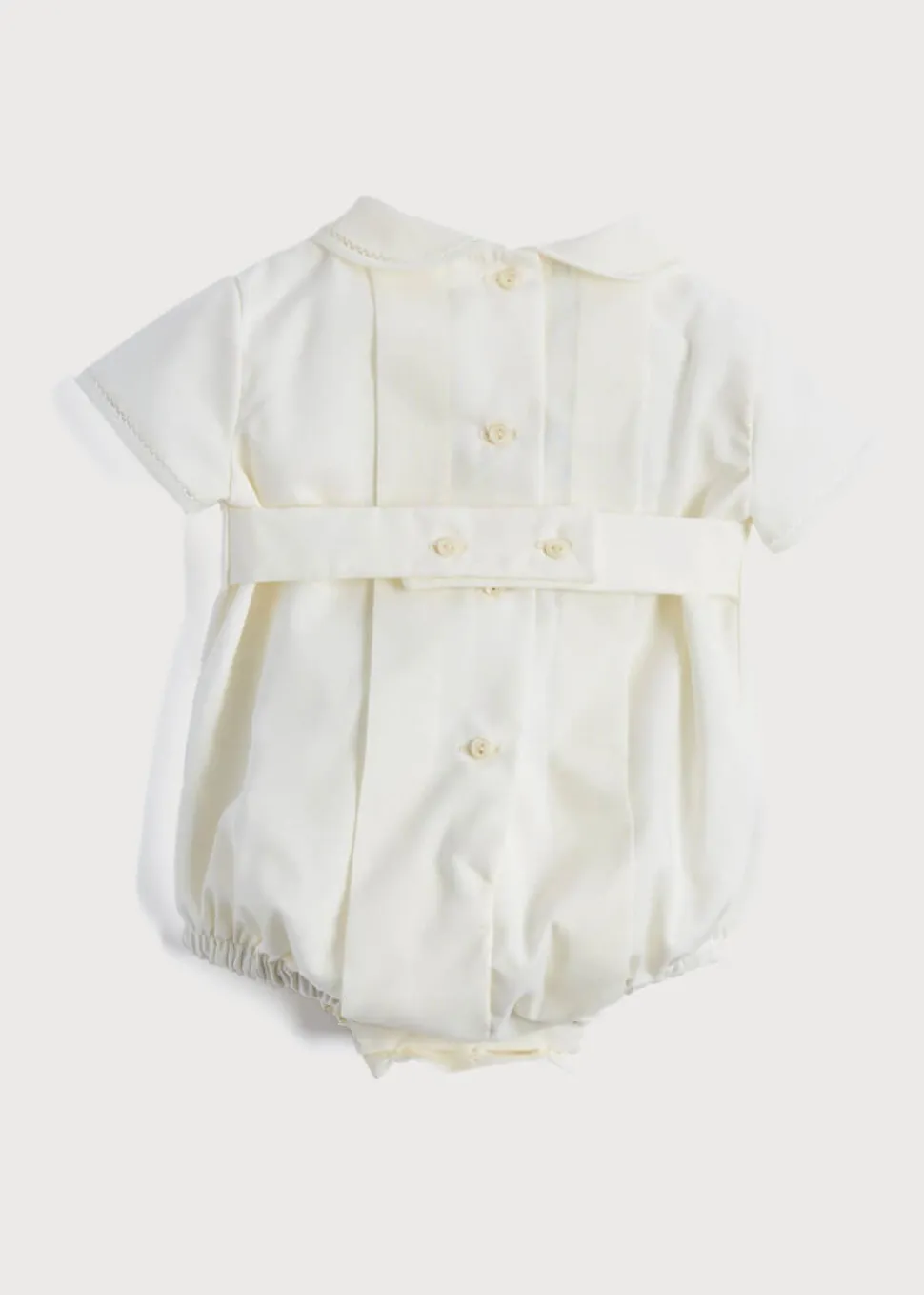 Renowned for exceptional craftsmanship and timeless design, Pepa London creates traditional childrenswear to be treasured and passed down. Each piece reflects the brand’s belief in dressing children like children, combining British style with refined details, comfort, and enduring elegance. The Panelled Christening Romper in Ivory offers a sweet alternative to the traditional gown, featuring a Peter Pan collar, soft panelling, and elasticated leg cuffs for comfort and movement. With its breathable lining and timeless silhouette, it’s a cherished choice for any special occasion.