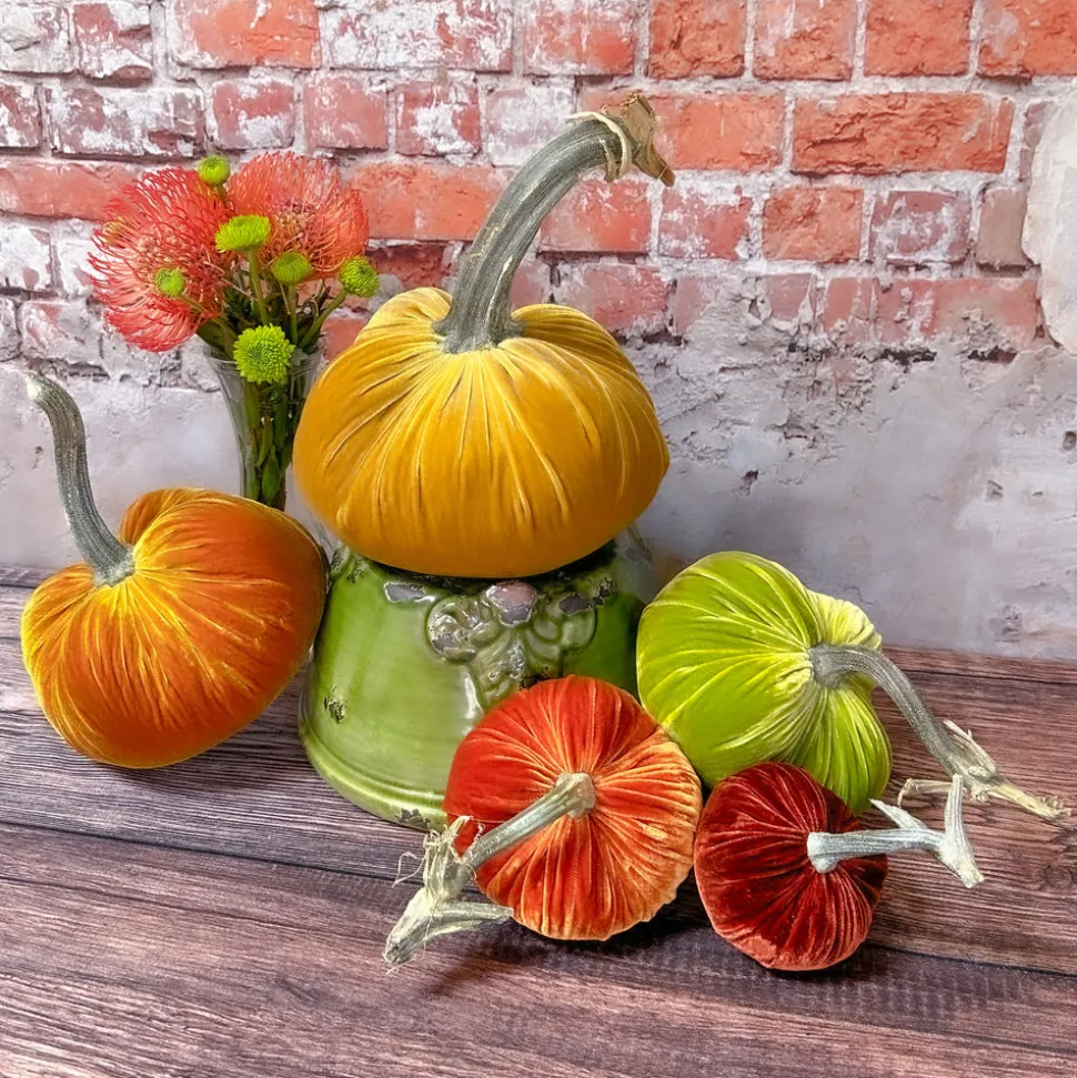 Set of 5. Silk velvet. Natural stem. Each piece is hand signed in gold.
