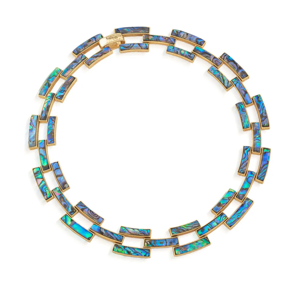 Half-Parisian, half-Texan, Capucine De Wulf’s unique upbringing was the inspiration for her namesake jewelry line. Her accessories combine French romance with an American sensibility. The Pathway Link Necklace in Abalone is a striking statement piece that celebrates life’s many journeys. Handcrafted with iridescent abalone shell set in gleaming gold links, it symbolizes the paths we build for ourselves—brick by brick, moment by moment—radiating individuality and intrigue with every wear.