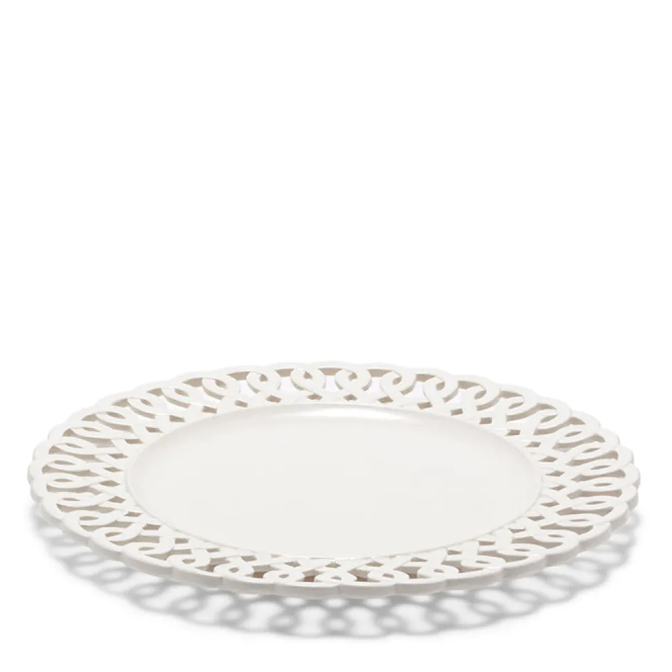 Effortless, beautiful living is what’s important to Aerin Lauder. That ease and refinement shines through in every detail of her collections of beauty products, home decor, and fashion accessories. Crafted in Italy’s Bassano region, the Paulette series has an intricate cutout design that plays with shadow and light, and is finished with a solid Maioliche glaze. The Paulette Bread Plate White is a sightly, textured addition to any dining table.