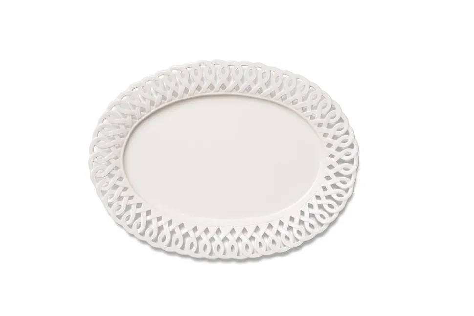 Effortless, beautiful living is what’s important to Aerin Lauder. That ease and refinement shines through in every detail of her collections of beauty products, home decor, and fashion accessories. Crafted in Italy’s Bassano region, the Paulette series has an intricate cutout design that plays with shadow and light, and is finished with a solid Maioliche glaze. Ideal for serving family style meals, larger mains, desserts, apps, and more, the Paulette Oval Platter in White a sightly, textured addition to any dining table.