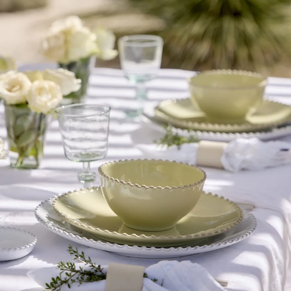 Costa Nova originated in a small Portuguese fishing village by the Atlantic Ocean. Carrying the name and heritage of Portugal worldwide, the brand creates fine stoneware collections that blend design, quality, and exceptional ceramic craftsmanship. The Pearl Collection Dinner Plates in Lilly Green, Set of 6 showcases a beaded border inspired by 18th- and 19th-century European ceramics, offering timeless beauty in a fresh, verdant hue.