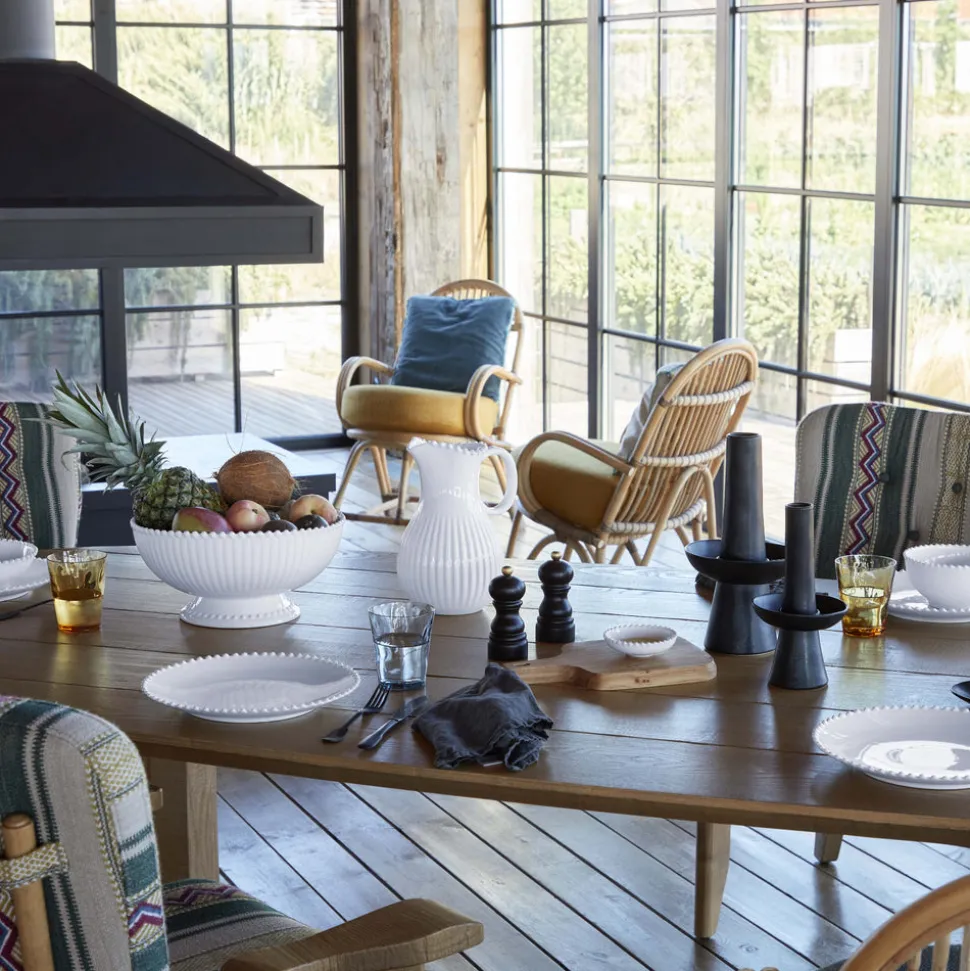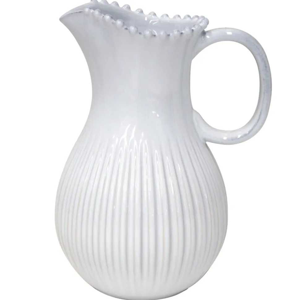 Costa Nova originated in a small Portuguese fishing village by the Atlantic Ocean. Carrying the name and heritage of Portugal worldwide, the brand creates fine stoneware collections that blend design, quality, and exceptional ceramic craftsmanship. The Pearl Collection Pitcher 87 oz. in White is gracefully accented with beaded embossing and a sculpted handle, combining elegance and utility for serving beverages at any gathering.