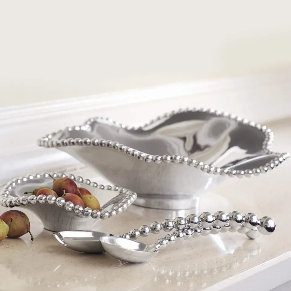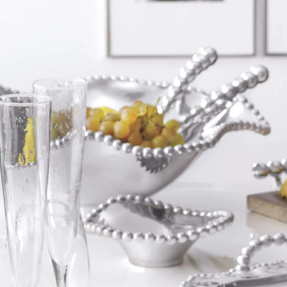 Known for its unique range of decorative homewares, handmade by artisans and notable designers from only recycled materials, Mariposa has been a leader in sustainability and style since its founding in 1983. Pearls follow the flowing contours of the Pearled Wavy Bowl, a brilliant centerpiece for any table.