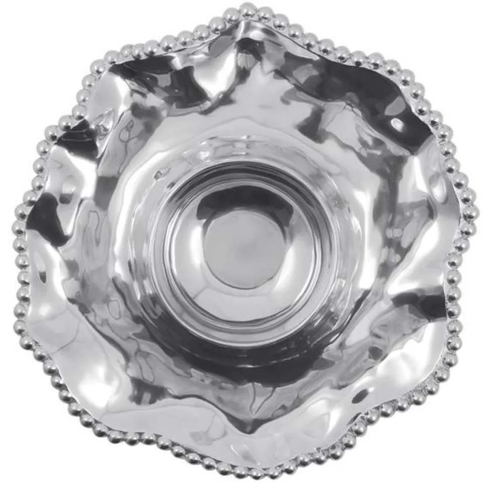 Known for its unique range of decorative homewares, handmade by artisans and notable designers from only recycled materials, Mariposa has been a leader in sustainability and style since its founding in 1983. Traditional pearled trim combines with a modern, wavy edge in the Pearled Wavy Chip & Dip. The casual elegance of this piece is always attractive, adding to whatever you choose to serve.