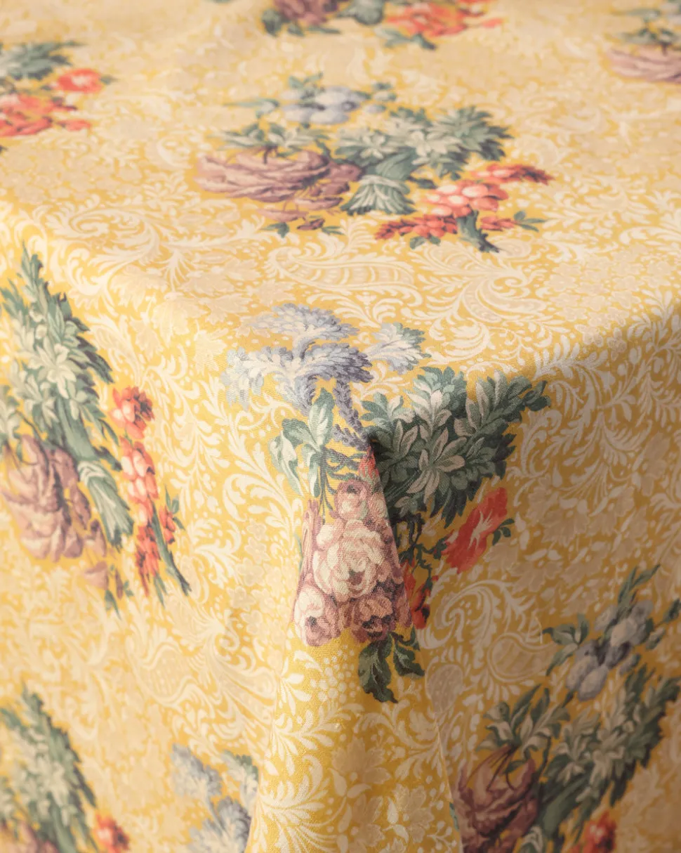 Inspired by the pages of Cabana—a magazine for a new generation of globetrotters—Casa Cabana’s homewares both explore and expand the worlds we share with our interiors. Designed in-house and hand crafted by artisans the world over, each piece feels unique, collectible, and at once part of your home. The Peonia Tablecloth features a soft yellow background adorned with intricate floral bouquets and delicate ornamental patterns. Made of 100% linen, it will add a charming touch to your next family dinner or party.
