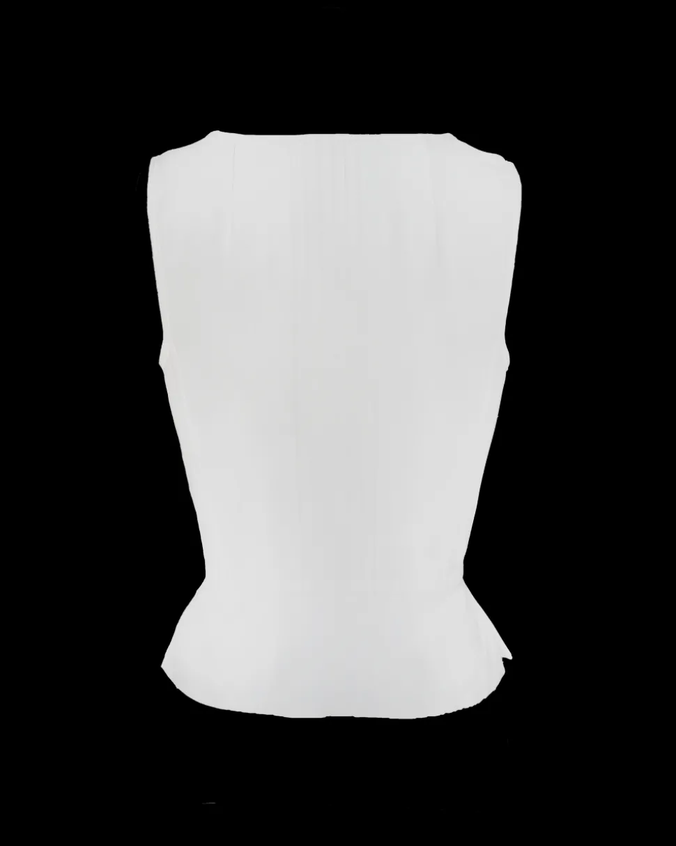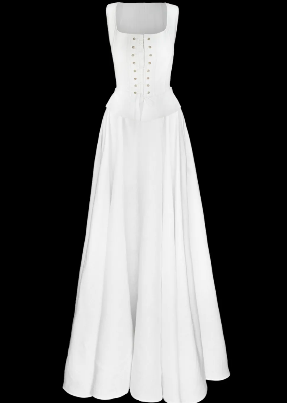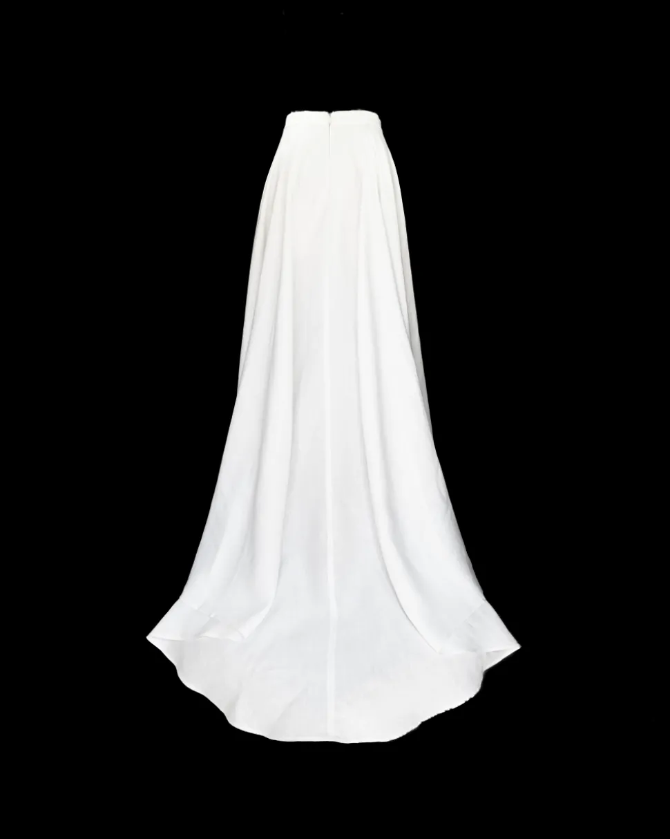 Milanese designer Alice Pons looks to traditional corsets, based on original historical designs, and transforms them into thoroughly contemporary pieces through bold and innovative design. The Peplum Corset is a 20th-century bustier featuring a flattering square neckline and a peplum hem. Adjustable back lacing allows the corset to be gradually tightened, ensuring a flattering fit. The Circle Skirt covers the body from the waist down to the toes and features soft drapes created by its circular volume and a small train in the back. The flowy, flouncy A-line silhouette adds volume and movement to the skirt. The skirt has an invisible back zip closure for easy fastening and a comfortable high-waisted fit.