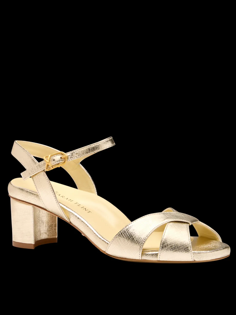 Sarah Flint sources the most exceptional materials from triple-dyed Italian suedes to jacquards woven in 300-year-old British mills. Once crafted in Italy, shoes go through rounds of prototyping and fit-testing to ensure comfort and durability. Introducing the Perfect Crossover Sandal 50 in Gold Saffiano, your new go-to for effortless style and versatility. This must-have silhouette is designed to seamlessly transition from everyday wear to special occasions. With toe coverage that is breathable yet elegant, plus a supportive ankle strap that does not wrap around your ankle, it delivers all-day comfort and timeless sophistication. Handcrafted in Italy for unmatched quality, this is the sandal your wardrobe has been waiting for.