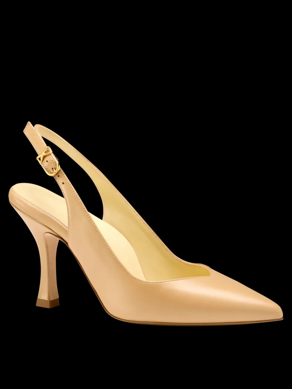 Sarah Flint sources the most exceptional materials from triple-dyed Italian suedes to jacquards woven in 300-year-old British mills. And once crafted 100% in Italy, shoes go through rounds of prototyping and fit-testing to ensure comfort and durability. Introducing the Perfect Sling 85 in Sand Calf: a modern take on timeless elegance. Crafted with the same beloved structure as our best-selling Perfect Pump 85, this new slingback style seamlessly blends sophistication with all-day comfort. Featuring an adjustable strap for a custom fit, a refined fluted 85mm heel, and a classic V-shaped vamp topline, it is as chic as it is wearable. Ideal for adding a touch of grace to your workday or elevating an evening look.